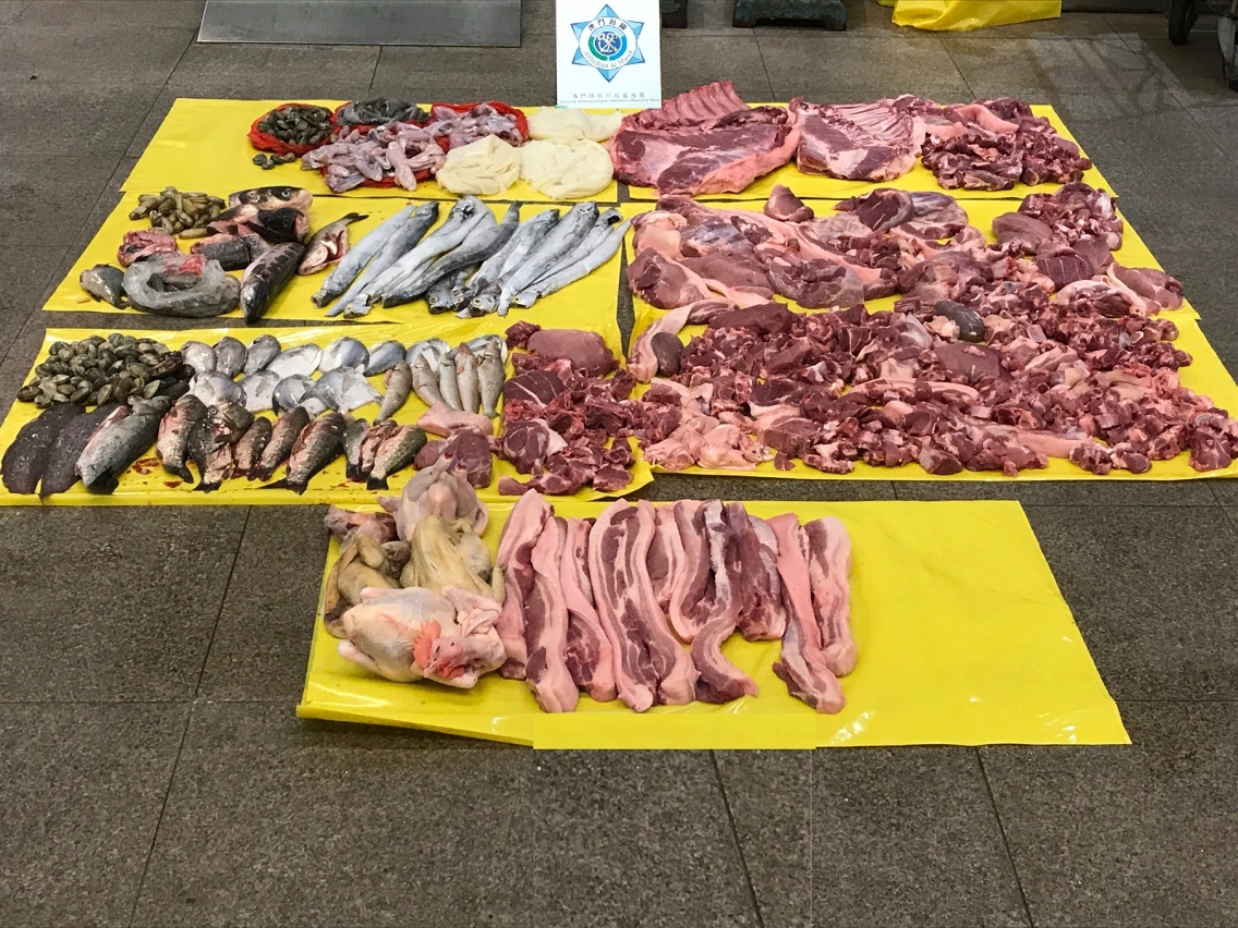 鑒於鄰近地區發生非洲豬瘟個案,為確保澳門居民健康,海關加強口岸截查工作。於本年1月至4月期間,澳門海關在各個口岸查獲的未經檢疫食材,合共約49,265公斤,其中肉類約11,942公斤、家禽約878公斤、蔬菜約35,548公斤及其他食材約897公斤。