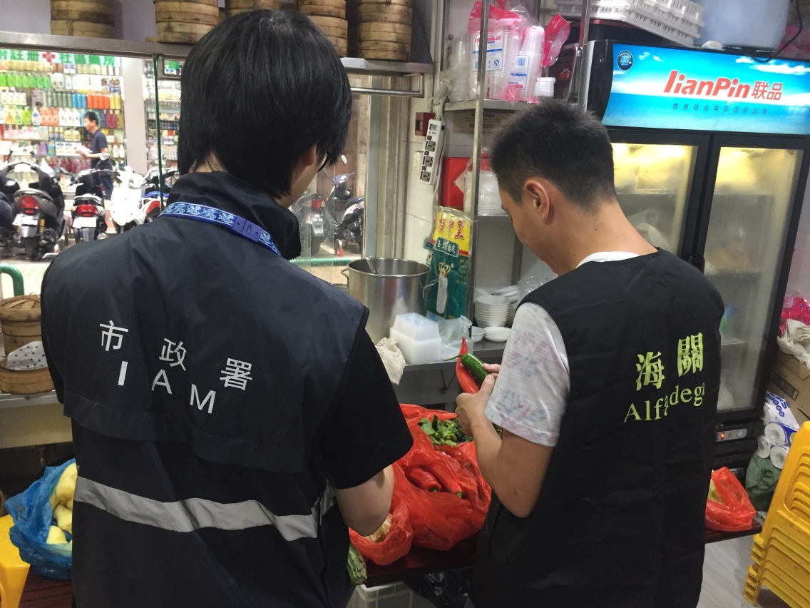 此外,澳門海關與巿政署於本月21、22、27及28日,在本澳市內採取聯合行動,分別查獲本澳6間食肆、1間代收公司、1間貿易公司、1間食品廠及13名水客,涉嫌銷售或走私未經檢疫食材,共檢獲蔬菜約392公斤、肉類約37公斤及豆類製品約5公斤。聯合行動期間,海關在關閘口岸亦同時加強抽查,四日內共檢獲蔬菜約1,091公斤及肉類約590公斤。