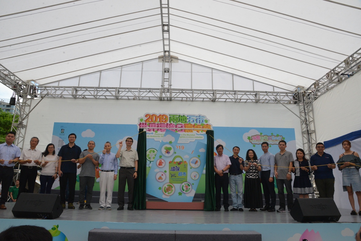 環境保護局聯同公共部門、社會團體、私營企業,以及鄰近地區環保部門合辦的“2019兩地五市世界環境日嘉年華”今日(1日)假友誼廣場舉行,透過舞台表演、攤位遊戲、環保工作坊等,宣揚“減廢回收好Easy”的活動主訊息。