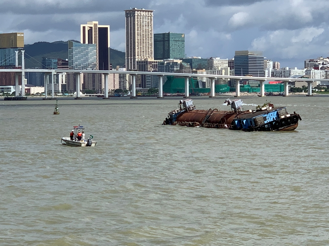 今日早上八時十分,海事及水務局船舶交通管理中心接報,兩艘貨船“新鴻翔3X”和“金沙機88XX”於氹仔客運碼頭以北的一段往內港航道附近發生碰撞,兩艘船的船員均沒有受傷,“金沙機88XX”入水傾側。海事及水務局接報後即時聯同海關派出船隻前往現場救援。
