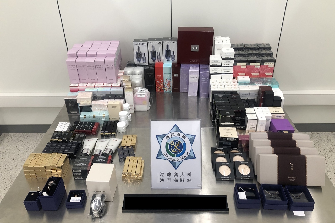 澳門海關近日在港珠澳大橋澳門口岸截獲二宗未經申報違法攜帶物品入境個案,涉案物品包括美容化妝產品、飾品、藥物、受保護瀕危物種以及未經檢疫食品等,二名涉案人士被海關依法作出起訴。