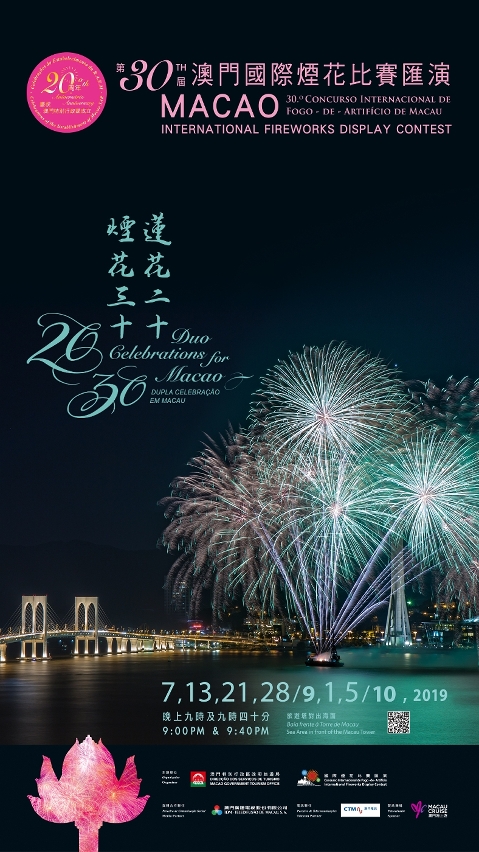 為慶祝澳門特別行政區成立二十周年及第三十屆澳門國際煙花比賽匯演 (簡稱:煙花比賽匯演),今年9月初至十˙一黃金周期間,旅遊局首次邀請十二隊世界級的優秀煙花隊送上主題為“蓮花二十 煙花三十”的十二場精彩演出。主辦單位旅遊局於今(15日)舉行記者招待會公佈煙花比賽及多項延伸活動的詳情。