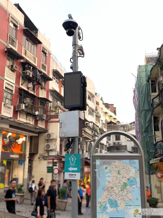 近日分別在大三巴街近牌坊及在議事亭前地的「天眼」支柱已有兩組人流預測預警系統完成安裝,並將在10月8日起在大三巴及議事亭一帶區域陸續完成其餘8組人流預測預警系統的安裝,及繼續進行測試和評估。