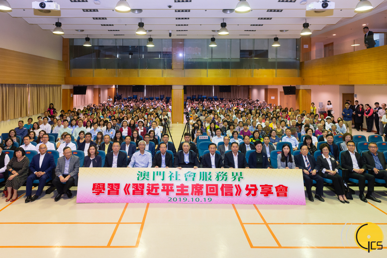 分享會上午在鏡湖醫院大禮堂舉行,行政長官崔世安、中央政府駐澳門聯絡辦公室主任傅自應及社會文化司司長譚俊榮,先後就習主席回信發表感想,多個社會服務團體的代表亦有發言。
