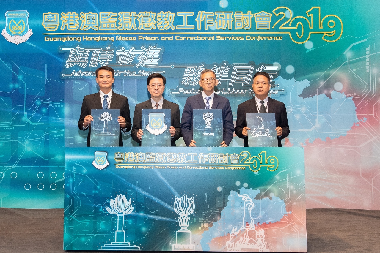 • 香港保安局李家超局長、香港懲教署胡英明署長、廣東省監獄管理局李景言局長與澳門懲教管理局程况明局長一同為研討會拉開序幕