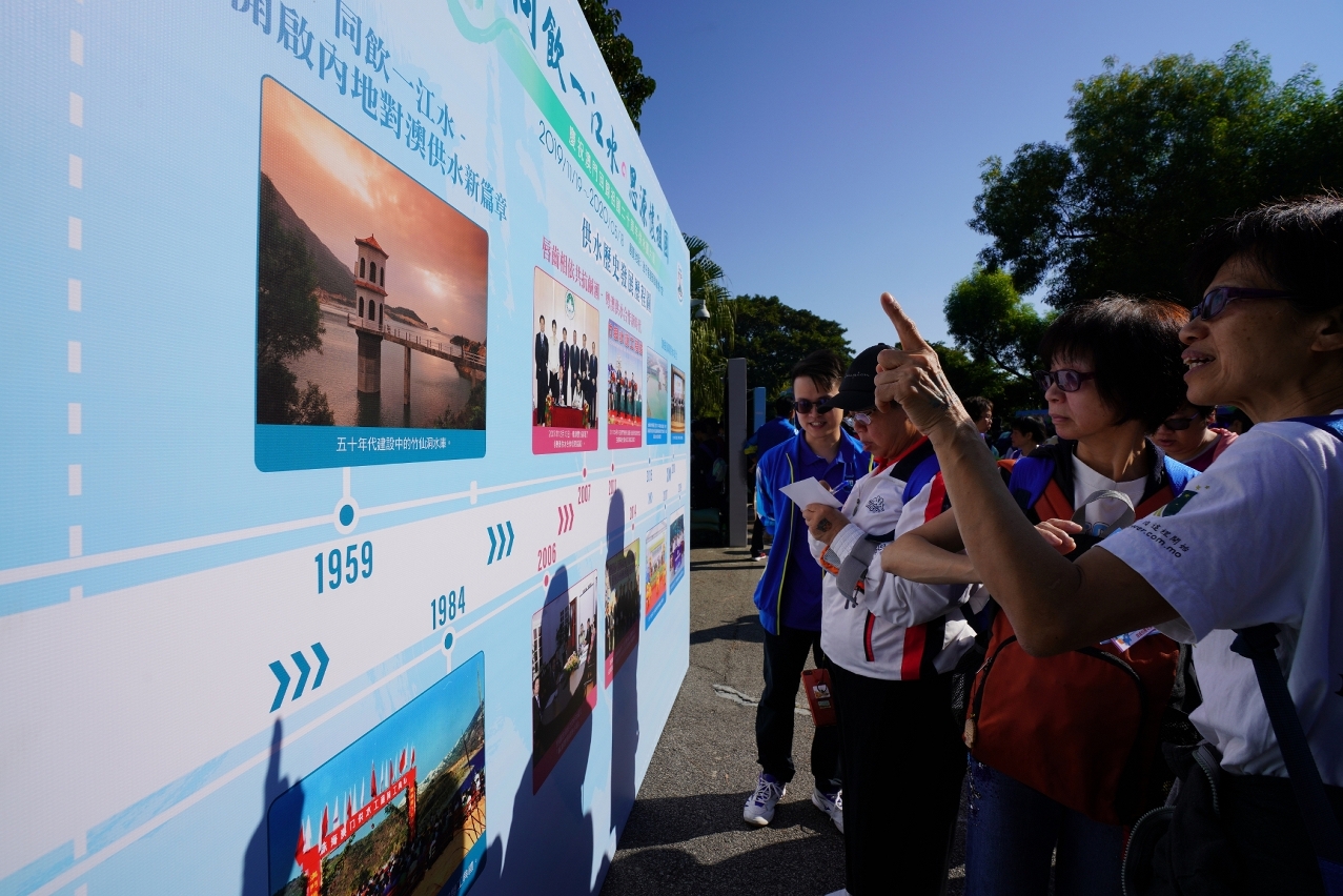 澳門本身也是一個缺水城市,早在60年前,澳門已經要依賴內地對澳供水,才能解決居民的日常生活所需,現時澳門超過96%的原水來自內地。今年是澳門回歸祖國20周年,經濟急速發展,社會欣欣向榮,全部離不開祖國源源不絕地為澳門供應潔淨水源。2018年,內地對澳的年供水總量已首次突破1億立方米,預計2019年的供水總量亦與去年相約。為讓市民和旅客認識澳門供水事務的歷程,局方也在氹仔客運碼頭離境大堂舉辦了“同飲一江水‧思源懷祖國”慶祝澳門回歸祖國二十周年供水圖片展,推廣飲水思源的理念。