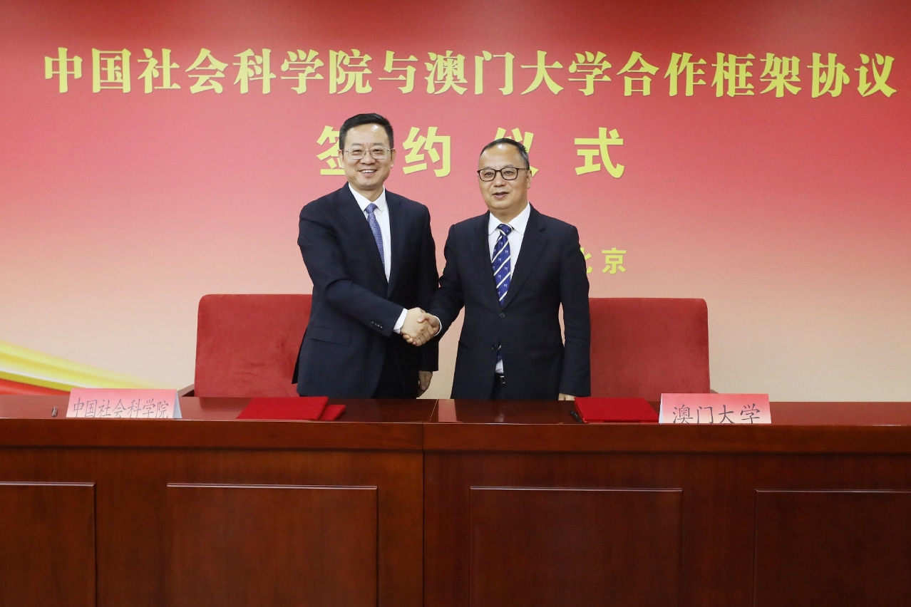 澳大校長宋永華率代表團前往中國社會科學院交流訪問,獲社科院副院長高翔熱情接待。宋永華與高翔簽署《澳門大學和中國社會科學院合作框架協議》,進一步深化落實雙方合作,共同為粵港澳大灣區的高等教育和研究發展注入新動力,助力粵港澳大灣區建設取得新成就。雙方同意在人才培養,高端智庫研究,澳門地方誌編纂修訂和科技人文跨領域研究等方面進行深入合作,並建立相關聯合研究機構。