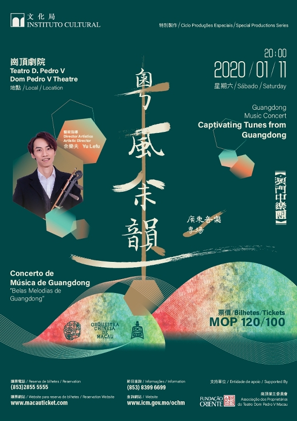 文化局轄下澳門中樂團於新年伊始獻上廣東音樂專場《粵風余韻》,音樂會1月11日(星期六)晚上8時於崗頂劇院舉行,以“符合時代精神的中樂藝術”為主題,由“新一代廣東音樂繼承者”高胡演奏家余樂夫擔任藝術指導,演奏粵樂名曲,體現嶺南文化的傳承與創新,展現新生代音樂人對粵樂傳承的態度。