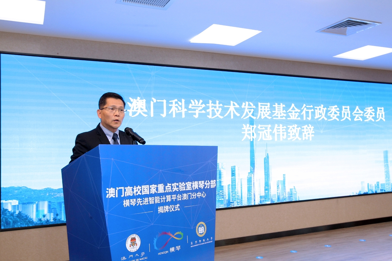 澳門大學國家重點實驗室橫琴分部揭牌暨橫琴先進智能計算平台澳門分中心簽約儀式今(17)日在珠海市橫琴新區創意谷舉行,標誌著澳大進一步參與粵港澳大灣區的科技創新發展。