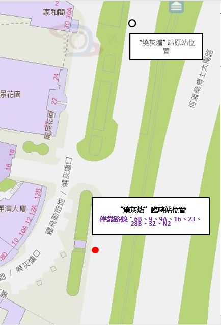 “區華利前地”站、“南灣湖景大馬路”站、 “民國馬路/西灣湖”站、 “燒灰爐臨時站” |