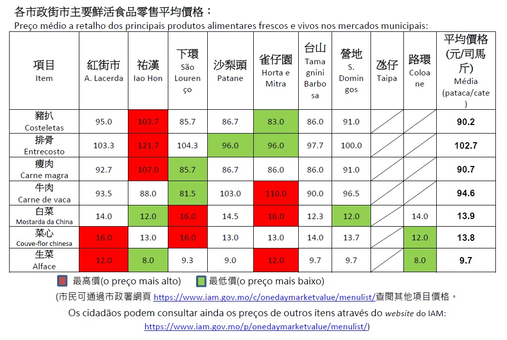 (市民可通過市政署網頁https://www.iam.gov.mo/c/onedaymarketvalue/menulist/查閱其他項目價格。)