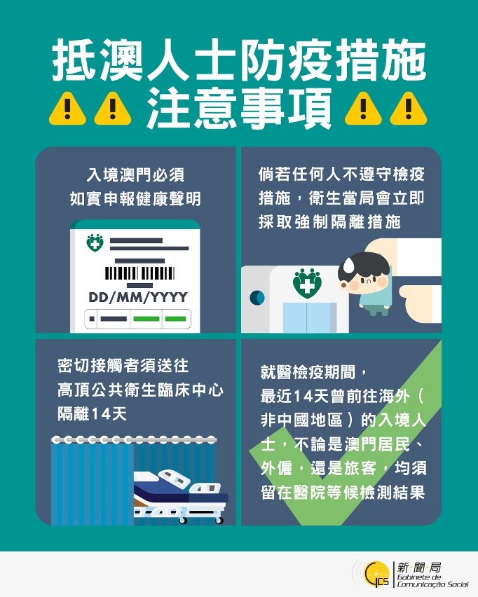 【圖文包】抵澳人士防疫措施