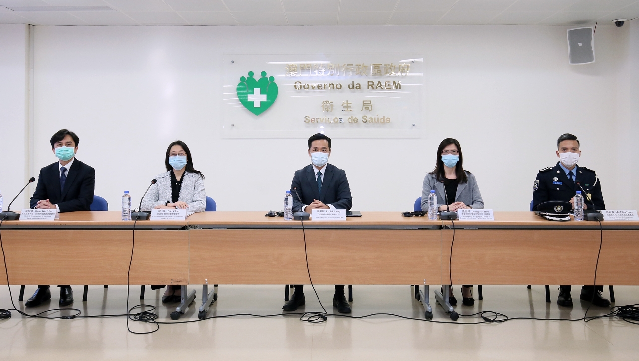 新型冠狀病毒感染應變協調中心(下稱應變協調中心)於今(9)日舉行例行記者會,仁伯爵綜合醫院羅奕龍醫務主任、教育暨青年局教育研究暨資源廳黃健武廳長、旅遊局執照及監察廳陳露廳長、治安警察局行動及通訊處馬超雄處長、疾病預防控制中心傳染病防制暨疾病監測部梁亦好協調員共同會見傳媒。