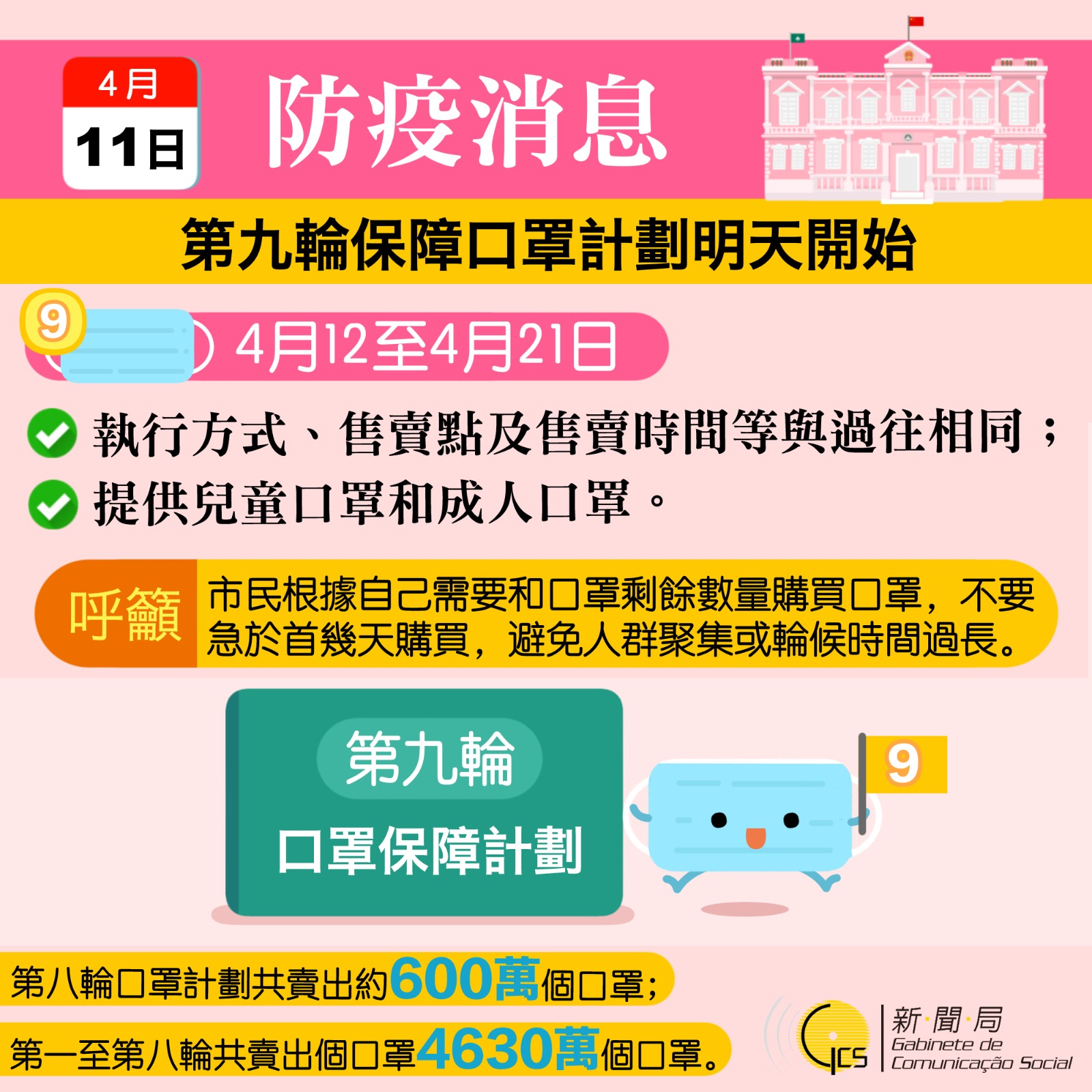 第九輪保障口罩供應澳門居民計劃明(12)日開始