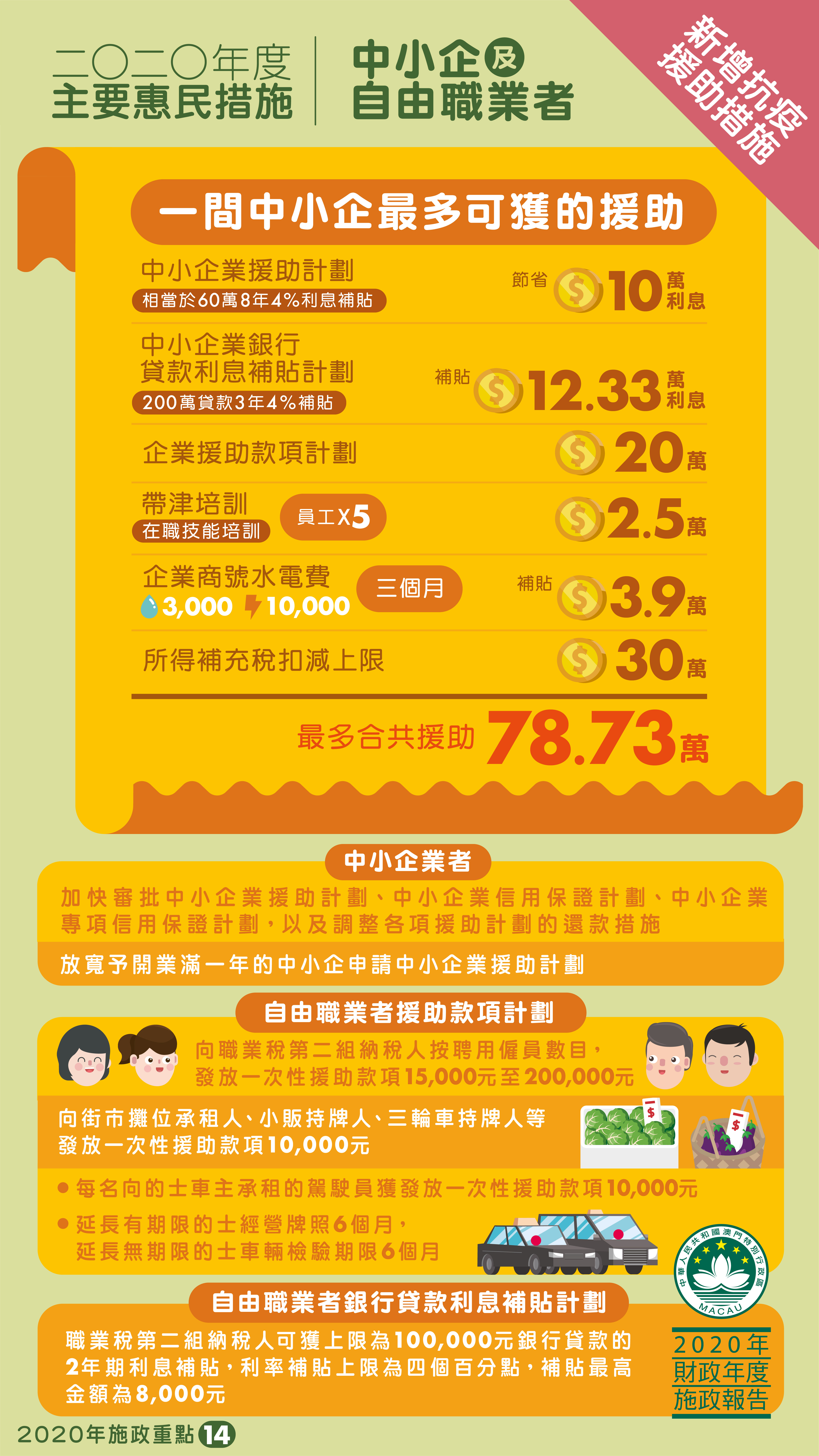 【圖文包】2020年度主要惠民措施:中小企及自由職業者(新增抗疫援助措施)