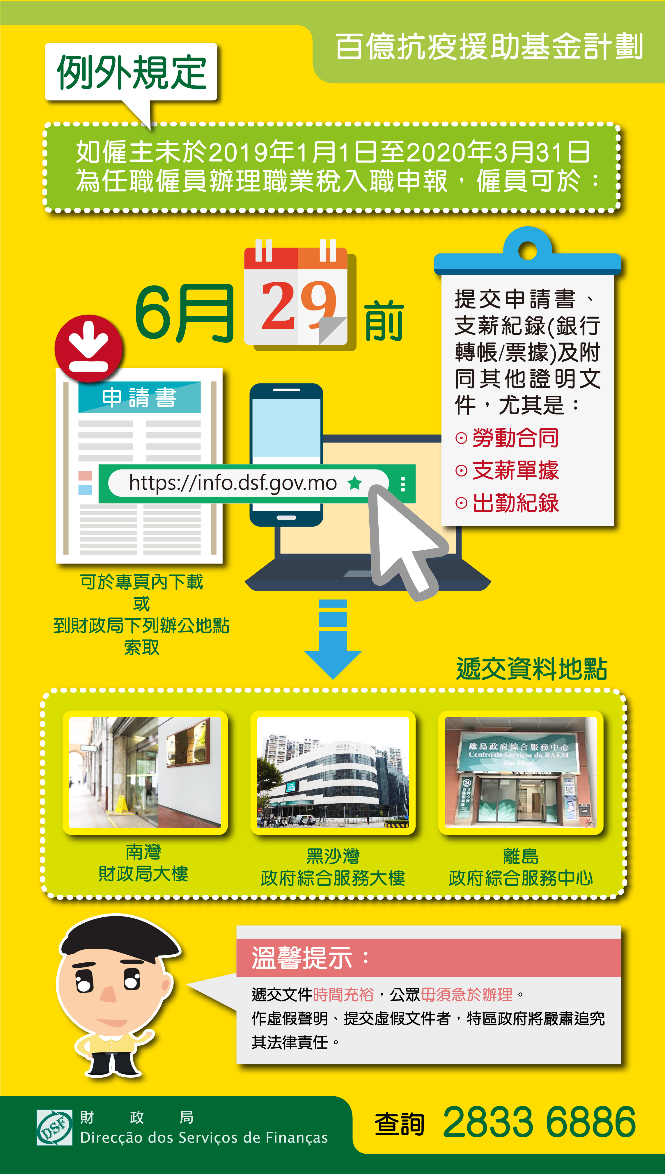 如有查詢,可致電財政局稅務諮詢熱線 2833 6886。
