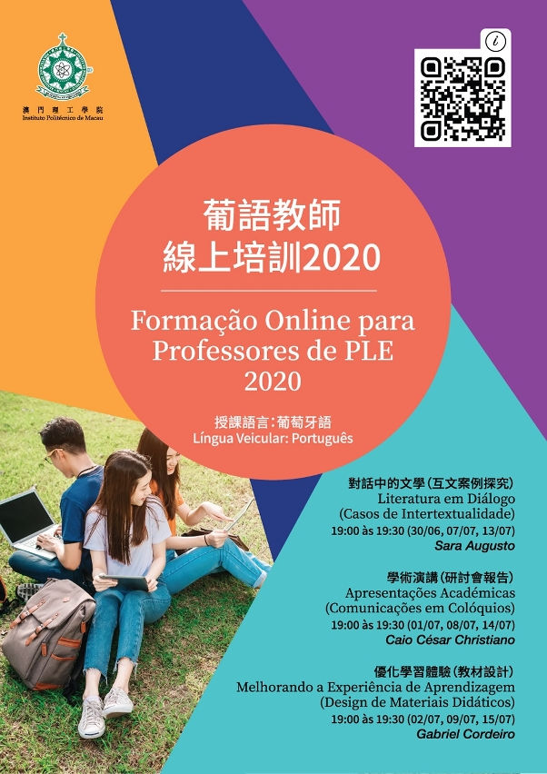 葡語教師線上培訓課程由即日開始接受報名至6月21日截止,名額有限,欲報從速,額滿即止。歡迎對上述專題感興趣的本澳、中國內地和其他亞太地區高校葡語教師參加培訓課程,掃描二維碼線上報名。如有垂詢,請致電澳門理工學院葡語教學及研究中心83998692。