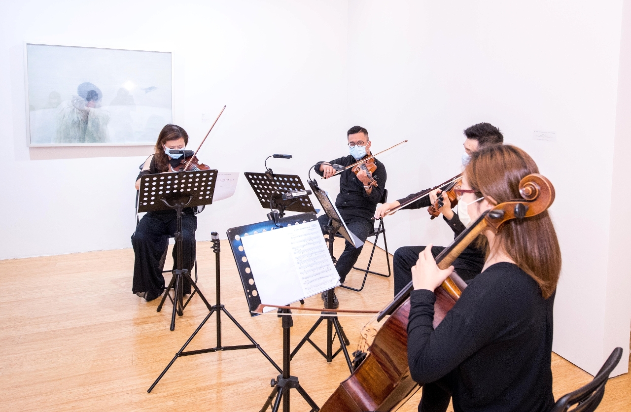 何多苓是中國當代繪畫藝術領軍人物之一,作品隱含神秘的藝術語言。是次展出的近50件套素描和油畫作品,無論是早期精確寫實的風格,還是近年“似與不似之間”的寫意筆觸,四十多年的藝術創作中何多苓都是以詩意抒情的藝術語言去表現美。展品中數幅《俄羅斯森林》系列可說是他蓬勃創造力的明證,作品繪畫在深沉森林背景下的普希金、肖斯塔科維奇、阿赫馬托娃等俄羅斯藝術家的人像,表現出激蕩的地火和春風。開幕式中特邀澳門樂團演奏了肖斯塔科維奇的樂曲選段,加上於展場免費派發的詠畫詩圖卡,充分體現出何多苓創作與音樂、詩歌的跨媒界聯繫與融合。