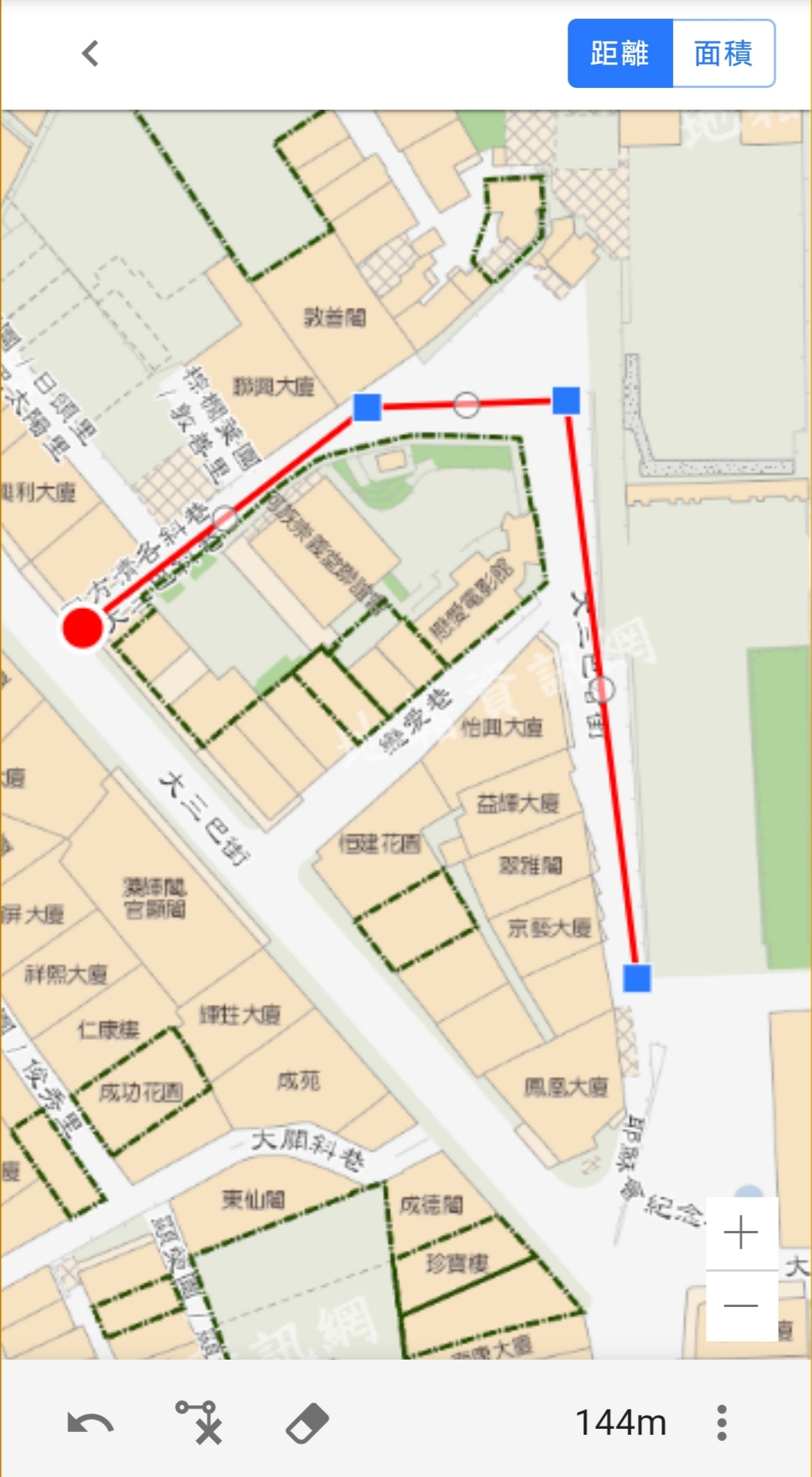 新《地籍資訊網》移動版新增了量算功能,用戶只需透過簡單的指控操作,在移動設備上點選需測量的線段或範圍,便可得知相應的線段長度或圖形面積。