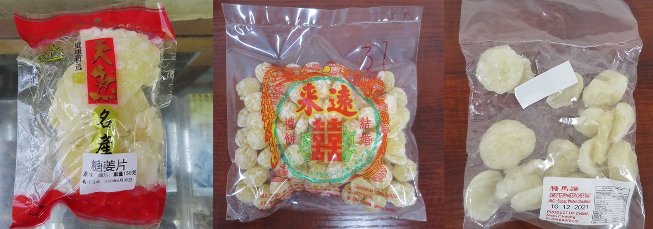 市政署聯同消費者委員會抽檢市面上的賀年食品,發現五款預包裝及三款散裝中式糖果樣本之二氧化硫含量超標。市政署已即時跟進處理,要求有關零售商及批發商將問題產品下架回收及停售,並持續跟進事件,以保障食品安全。