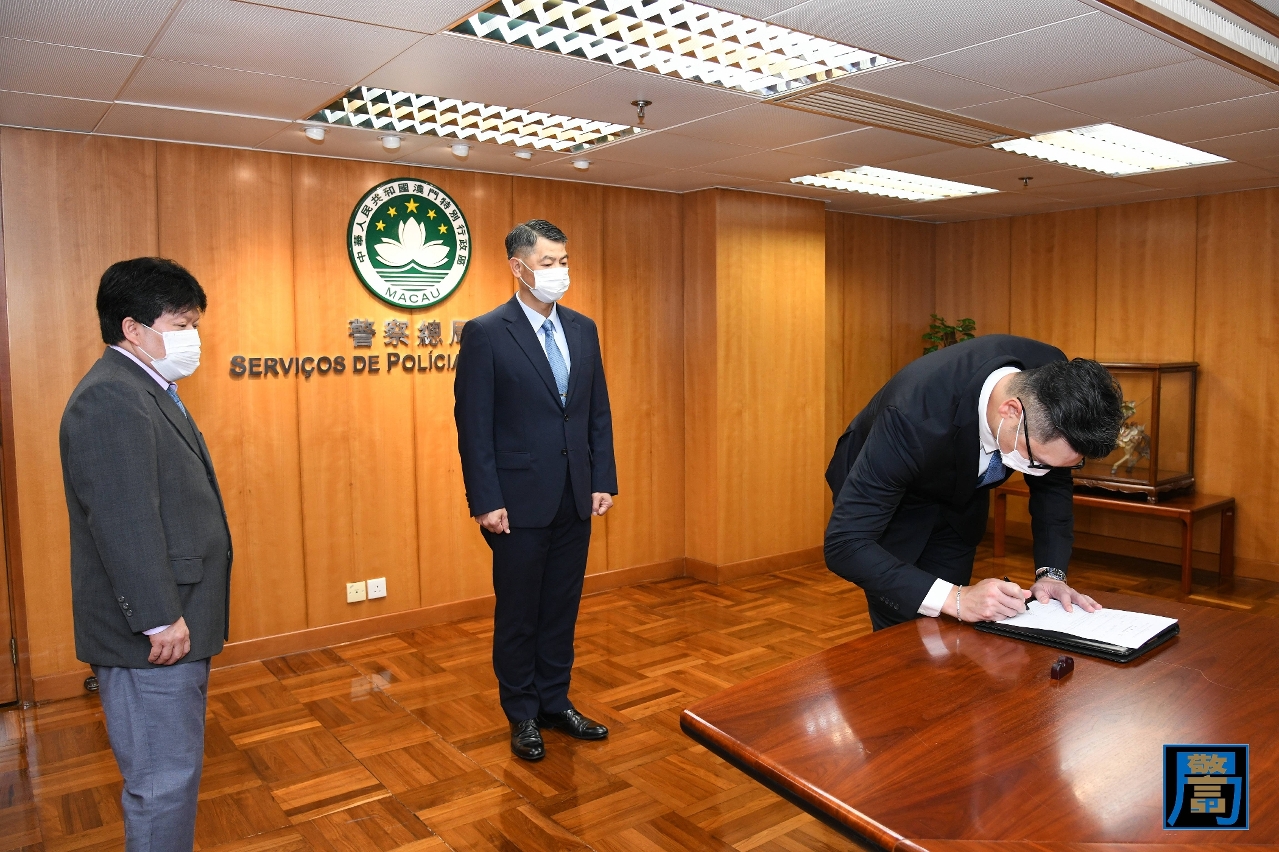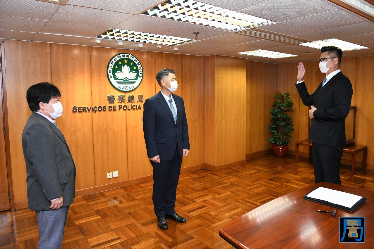 根據保安司司長批示,自2021年1月28日起,委任司法警察局黃志康一等督察為警察總局局長助理,主管行動策劃中心。黃志康一等督察在警察總局局長梁文昌見證下,宣誓就任為警察總局局長助理一職。儀式於今(28)日上午在警察總局舉行,出席儀式的還有局長助理劉運嫦、王健、局長辦公室協調員趙汝民以及各部門主管及同事。