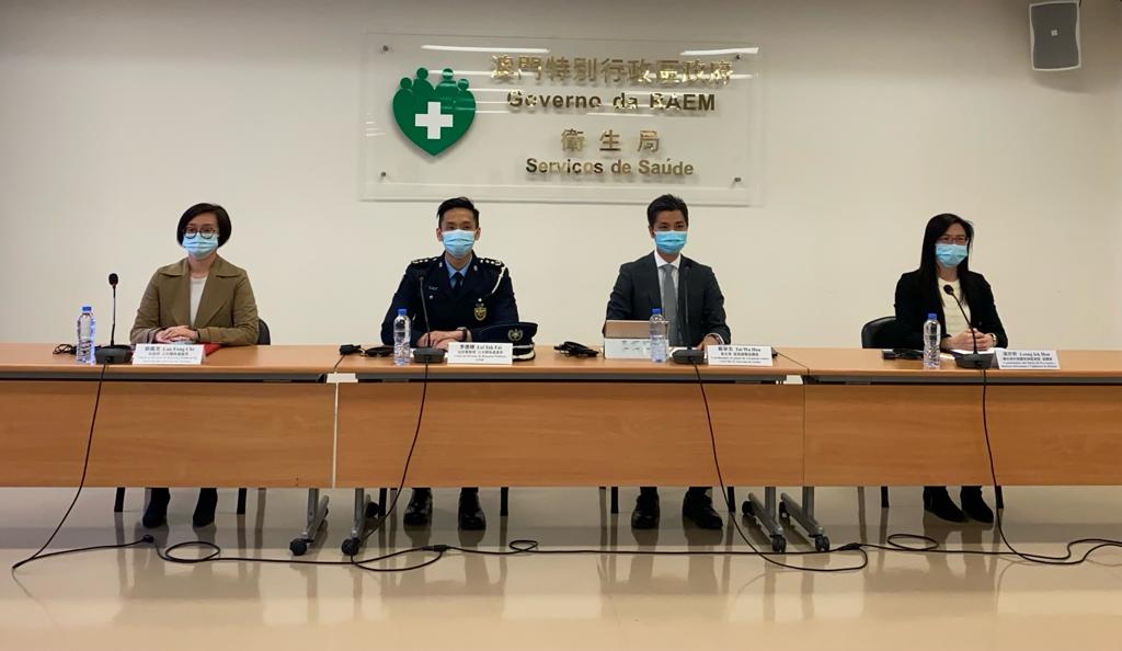 新型冠狀病毒感染應變協調中心(下稱應變協調中心)於今(22)日舉行例行記者會,衛生局疫苗接種協調員戴華浩醫生、治安警察局公共關係處李德輝處長、旅遊局公共關係處劉鳳池處長、疾病預防控制中心傳染病防制暨疾病監測部梁亦好協調員共同會見傳媒。