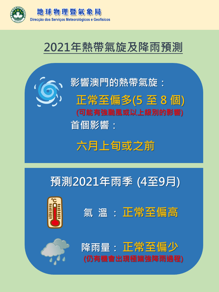 本澳2021年熱帶氣旋及降雨預測