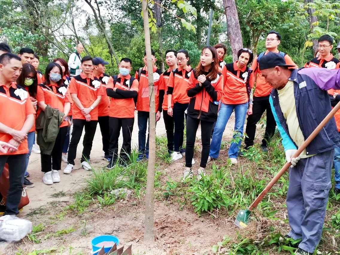 • 團體義工在工作人員的帶領下參與林木護理工作