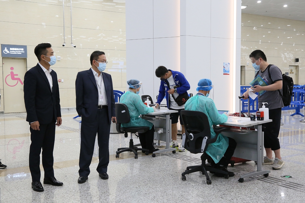 因應明(2)日開始一連多日的假期,衛生局羅奕龍局長召開了衛生局領導層防疫工作會議,聽取各部門匯報防疫工作部署,並討論假期期間進一步的防疫安排,還有就推動更多市民接種疫苗以建立免疫屏障,包括推動團體的預約接種,探討派員進行外展的群體接種,增加疫苗接種點等可行性政策進行了深入討論,與會者一致共識就如何推動更多市民接種疫苗儘快形成可行的執行方案。隨後,羅奕龍局長和疾病預防控制中心林松主任亦到澳門國際機場、橫琴口岸澳門口岸區、關閘口岸、港珠澳大橋澳門口岸視察各項出入境的防疫措施,確保市民節假日期間的通關檢疫流程順暢,貫徹執行「外防輸入,內防反彈」的防疫策略。