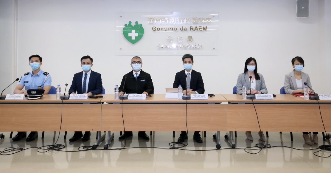 新型冠狀病毒感染應變協調中心(下稱應變協調中心)於今(10)日舉行記者會,警察總局局長助理暨民防及協調中心主管王健、仁伯爵綜合醫院醫務主任戴華浩醫生、教育及青年發展局非高等教育廳黃嘉祺廳長、旅遊局公共關係處藍同好處長、治安警察局公共關係處李德輝處長和疾病預防控制中心傳染病防制暨疾病監測部梁亦好協調員共同會見傳媒。