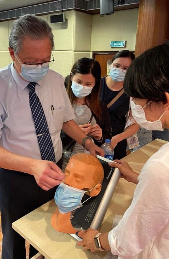為進一步擴大採樣人員的隊伍,加快採樣效率,衛生局計劃招募本澳所有非政府醫護人員參與全民核酸檢測採樣工作,並為相關人員提供專業培訓,共同為下一次全民核酸檢測做好準備。為此,衛生局局長羅奕龍及副局長郭昌宇於日前中午與澳門醫務界聯合總會陳亦立會長、澳門中華醫學會劉冬妮會長、澳門執業西醫公會張麗瑪會長、澳門醫療人員協會何舜發會長、澳門醫護志願者協會白琪文會長以及澳門青年醫療人員協會曾潭飛監事會面,就如何能招募更多醫務界人員加入全民核酸檢測出謀獻策。