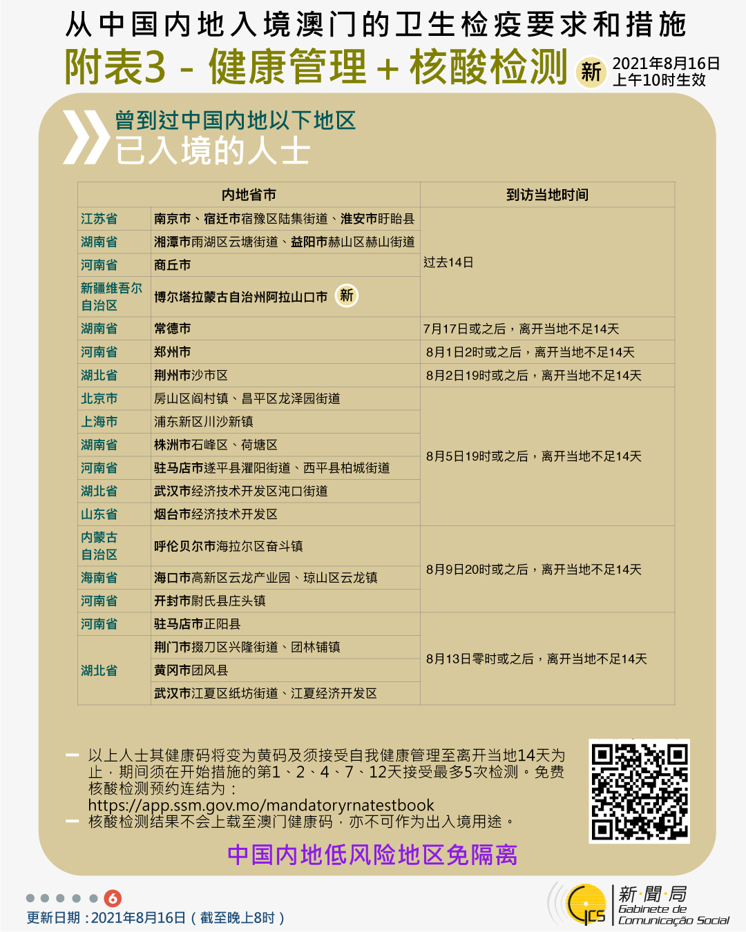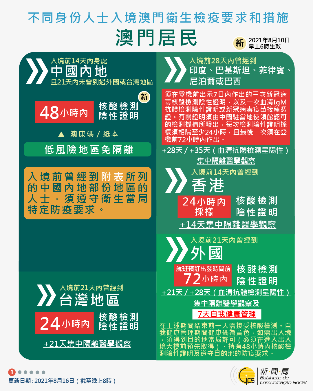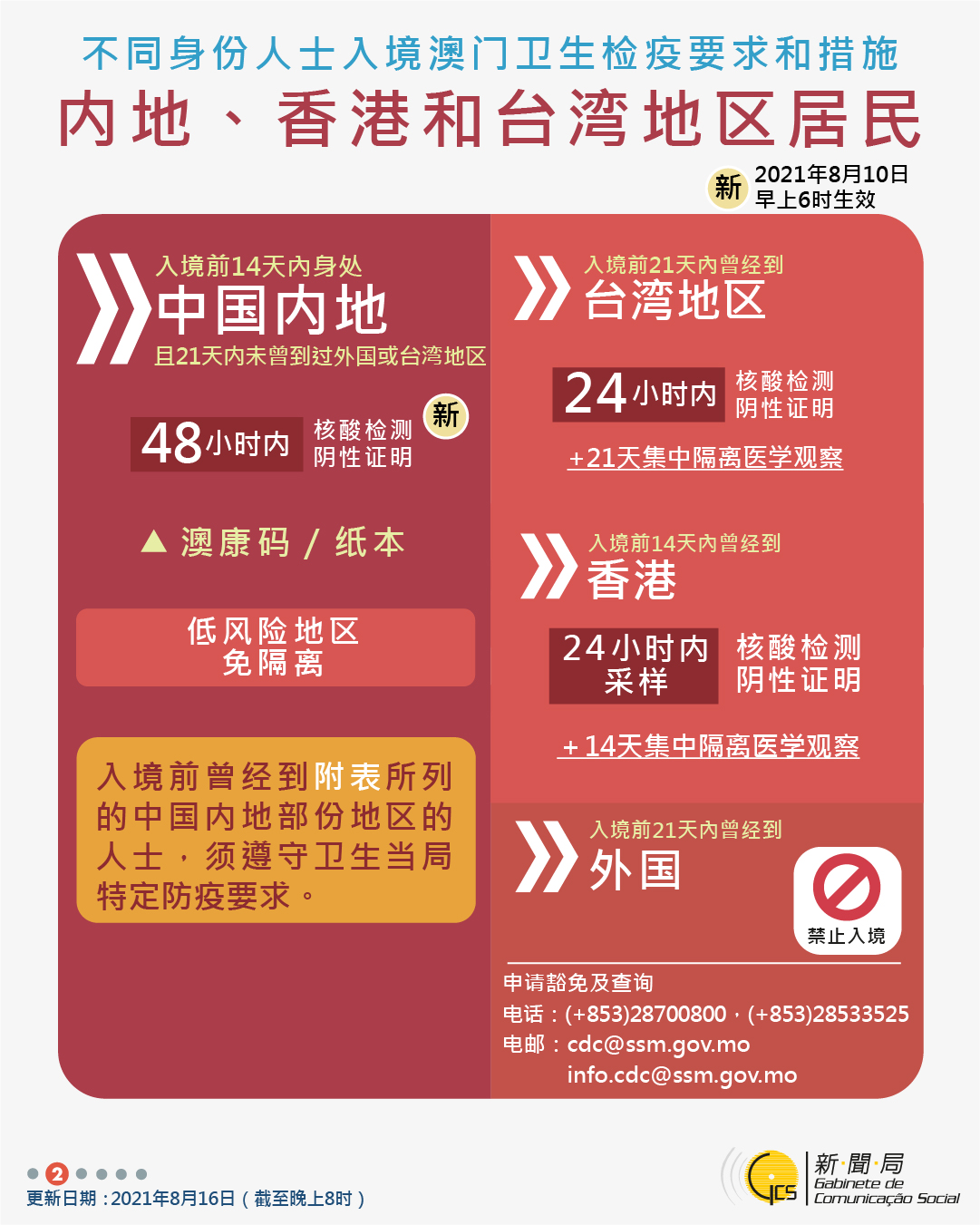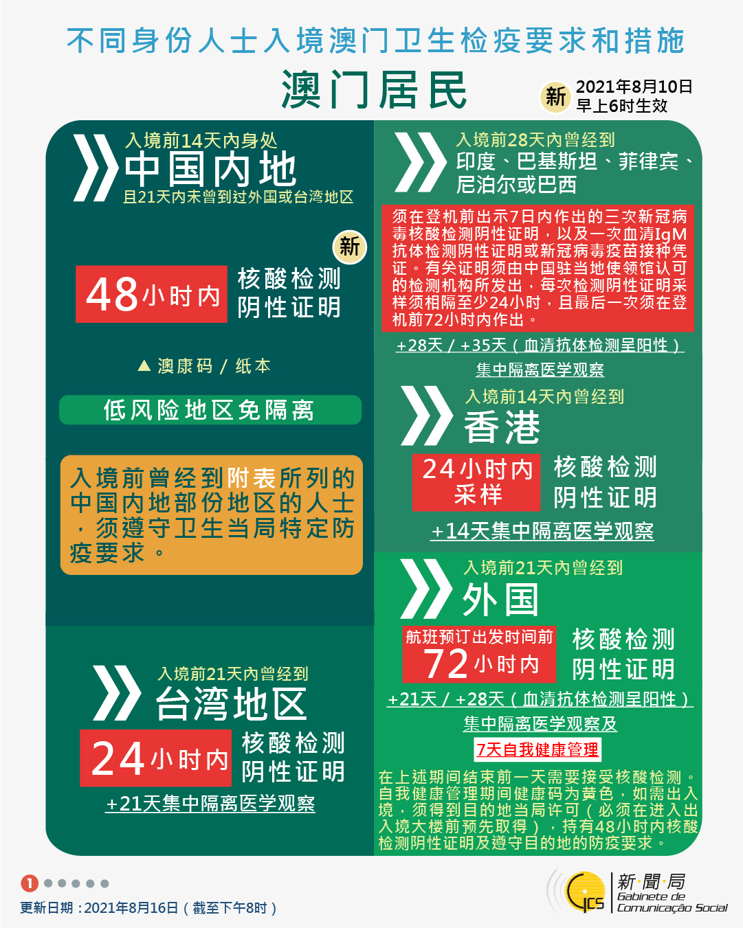 【圖文包】2021/08/16最新入境澳門衛生檢疫要求和措施