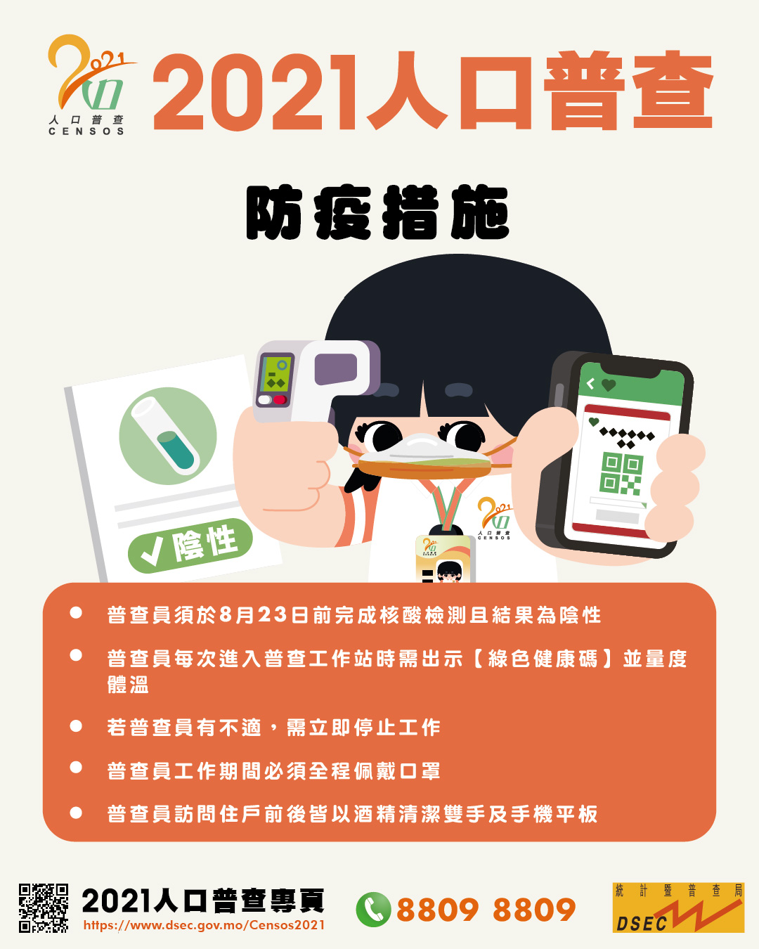 為確保人口普查能在安全的情況下進行,局方按照衛生局的防疫指引,規定所有普查員必須於8月23日前的48小時內完成並通過核酸檢測。