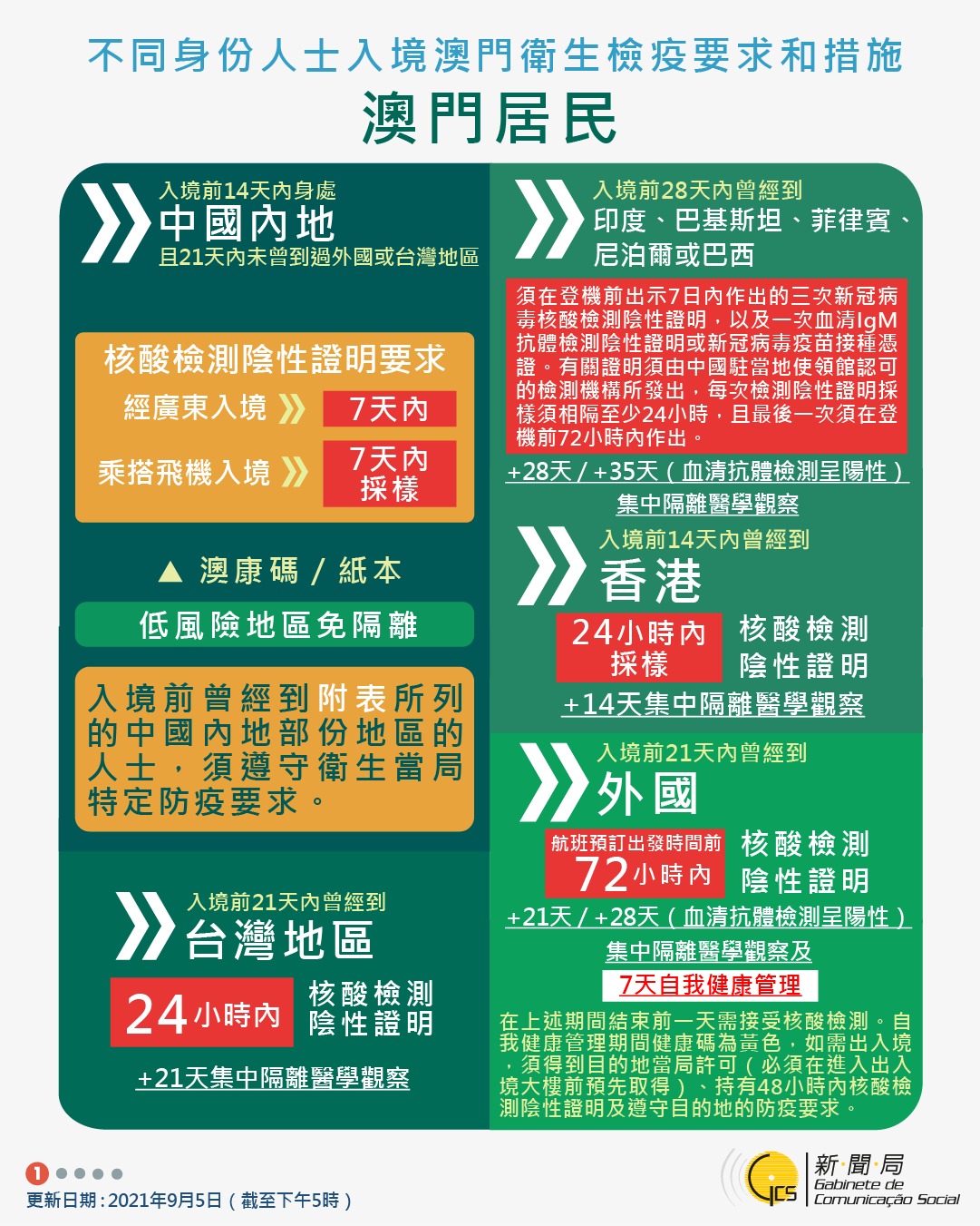 【圖文包】2021/09/05最新入境澳門衛生檢疫要求和措施
