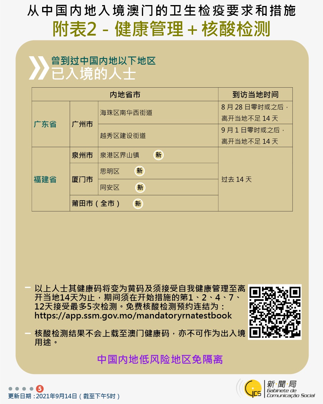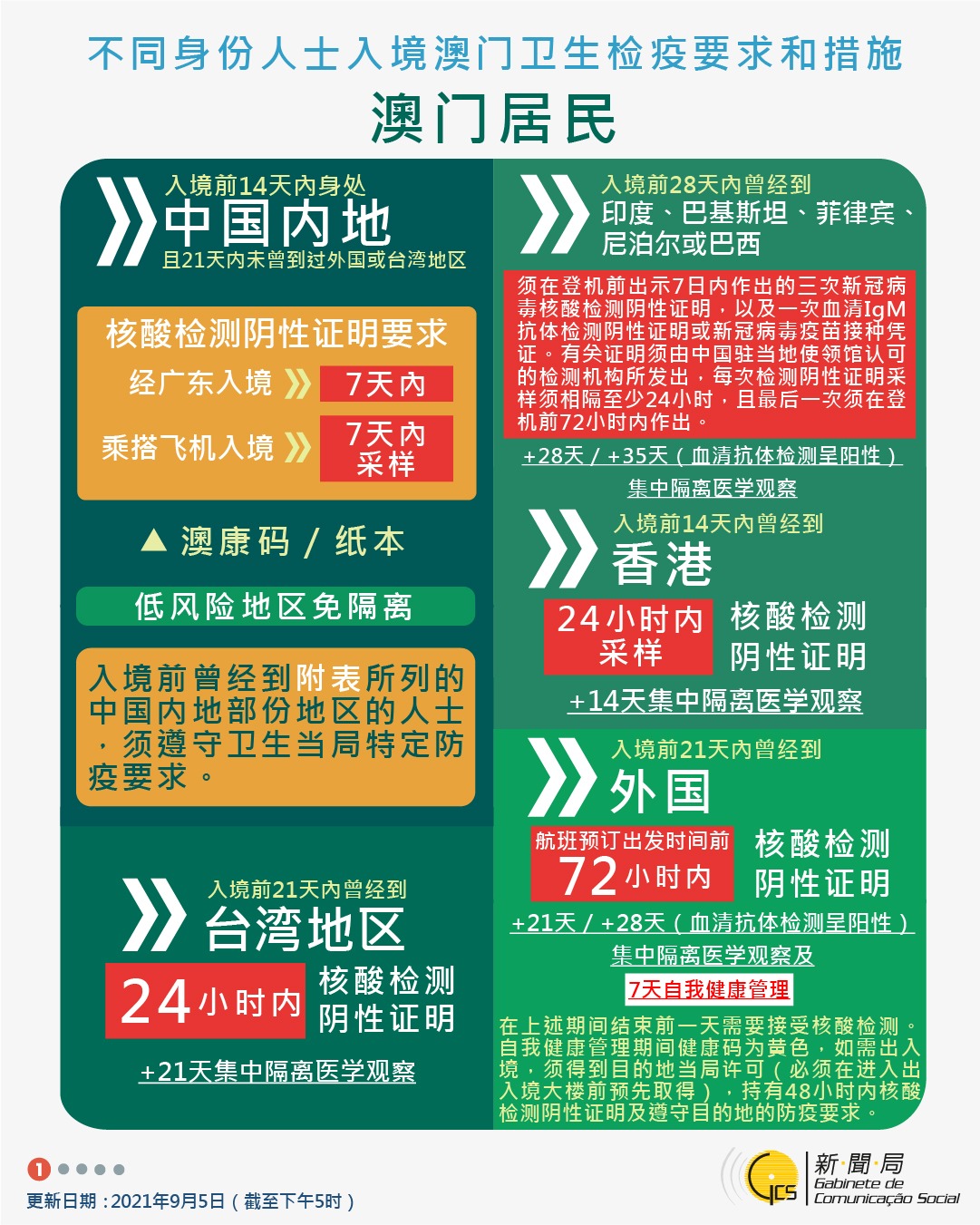 【圖文包】2021/09/14最新入境澳門衛生檢疫要求和措施