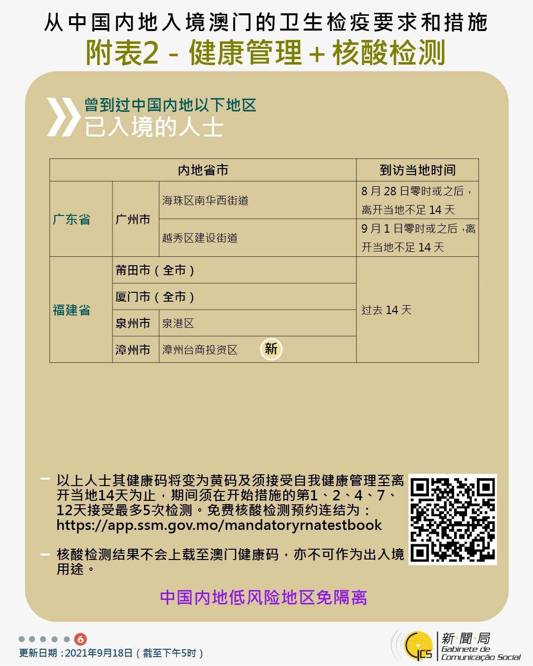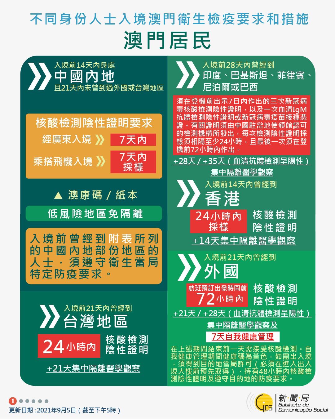 【圖文包】2021/09/18最新入境澳門衛生檢疫要求和措施
