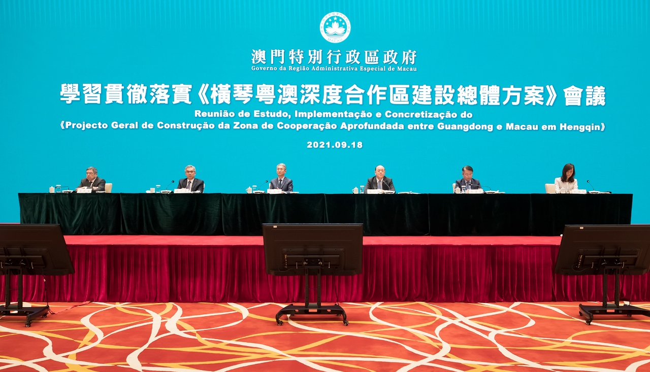 行政長官賀一誠今(18)日早上10時於中葡綜合體主持“學習貫徹落實《橫琴粵澳深度合作區建設總體方案》會議”。