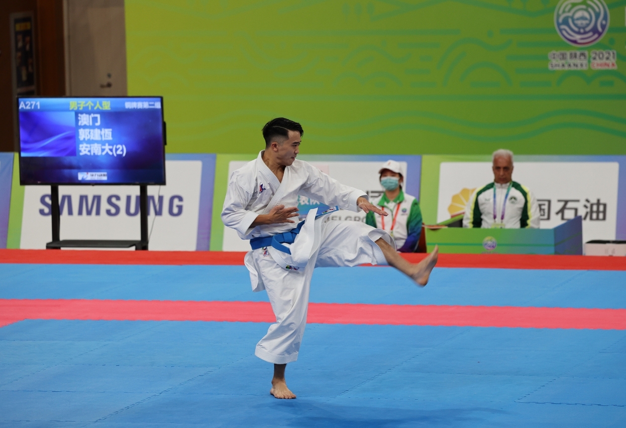 在陝西省西安市參加『第十四屆全國運動會』的澳門特區體育代表團,今日(18日)憑藉郭建恆在空手道男子個人型以25.02分的成績獲得銅牌,是澳門特區代表團在本屆全運會的第一面奬牌,也是澳門參加全運會以來的首面奬牌。