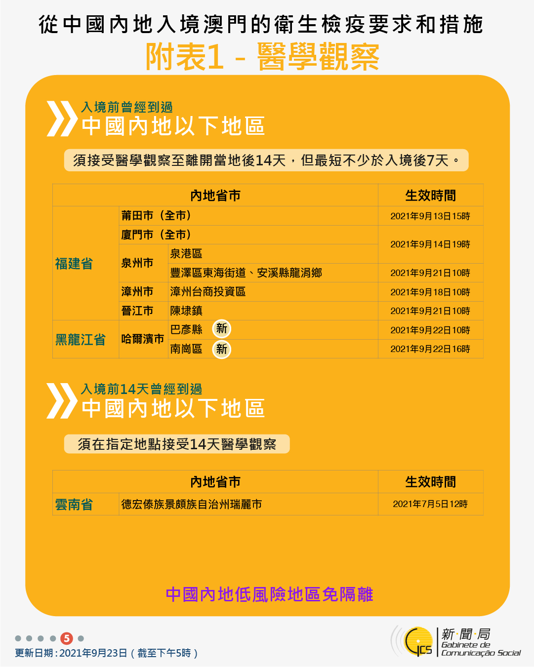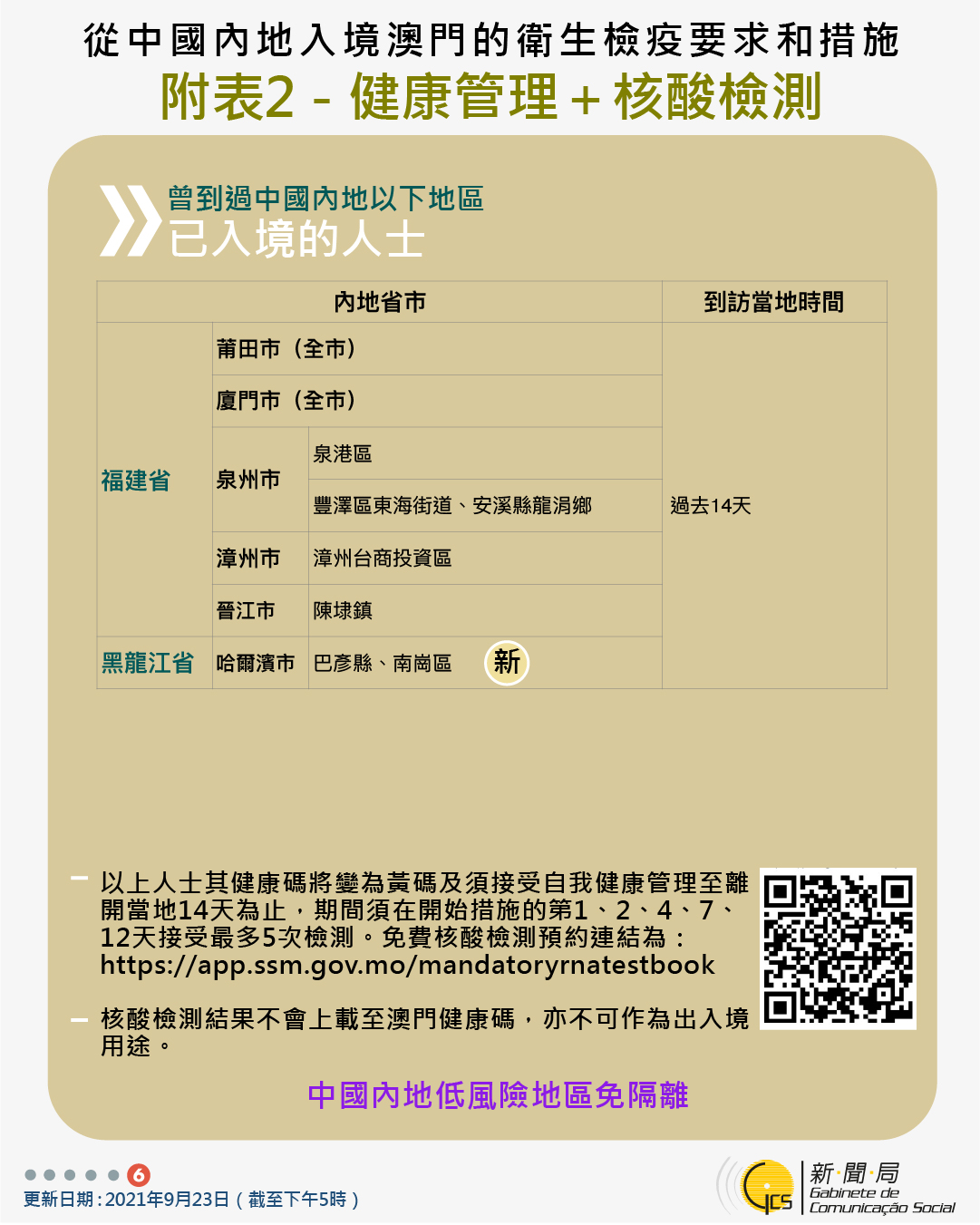 【圖文包】2021/09/23最新入境澳門衛生檢疫要求和措施
