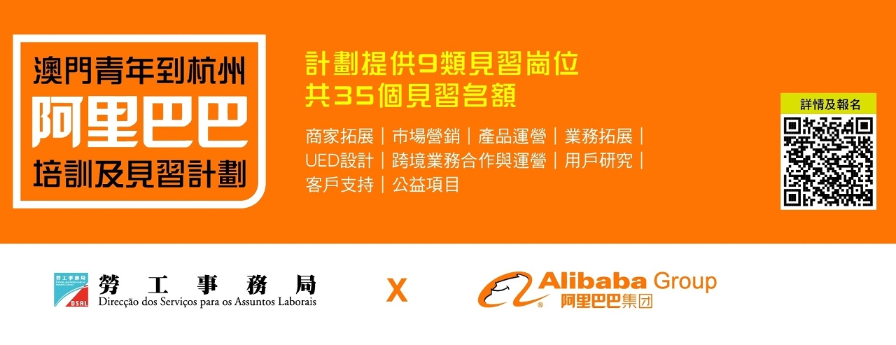 繼今年2月首次與內地知名跨國互聯網技術企業合作推出“澳門青年到內地字節跳動見習計劃”,並成功協助17名青年到企業見習,勞工局於9月15日再推出“澳門青年到杭州阿里巴巴培訓及見習計劃”(下稱“計劃”),為澳門青年提供到浙江省杭州市接受為期8周的在崗見習實訓機會,協助澳門青年了解內地數字經濟領域的最新發展,爲澳門企業數字轉型和升級培養人才,該計劃提供35個見習名額。有興趣參加計劃的澳門青年朋友可於9月30日前登入勞工局 “澳門青年到杭州阿里巴巴培訓及見習計劃”專頁了解見習計劃詳情及進行網上報名。