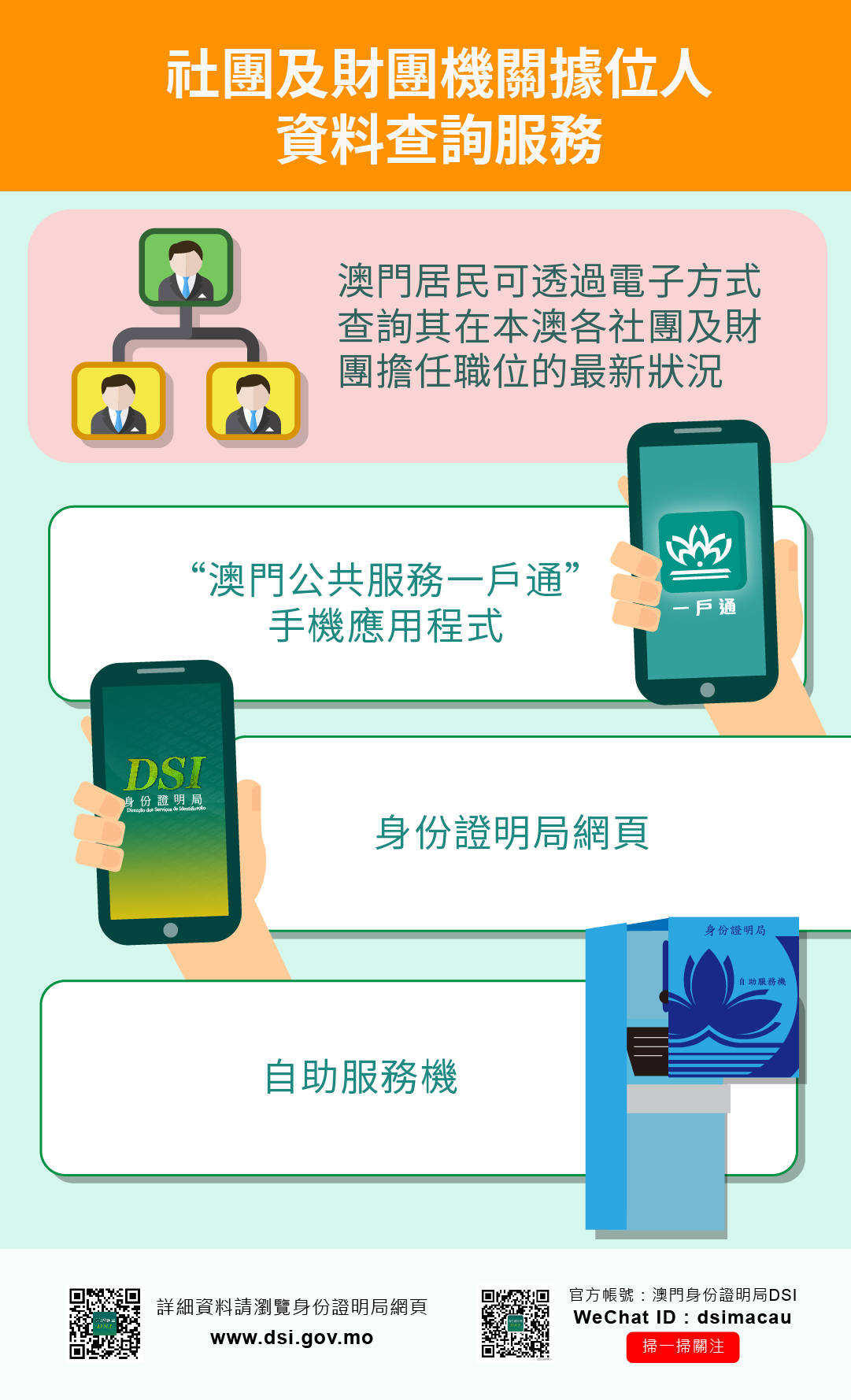 如有查詢,請致電身份證明局熱線2837-0777或電郵至info@dsi.gov.mo。