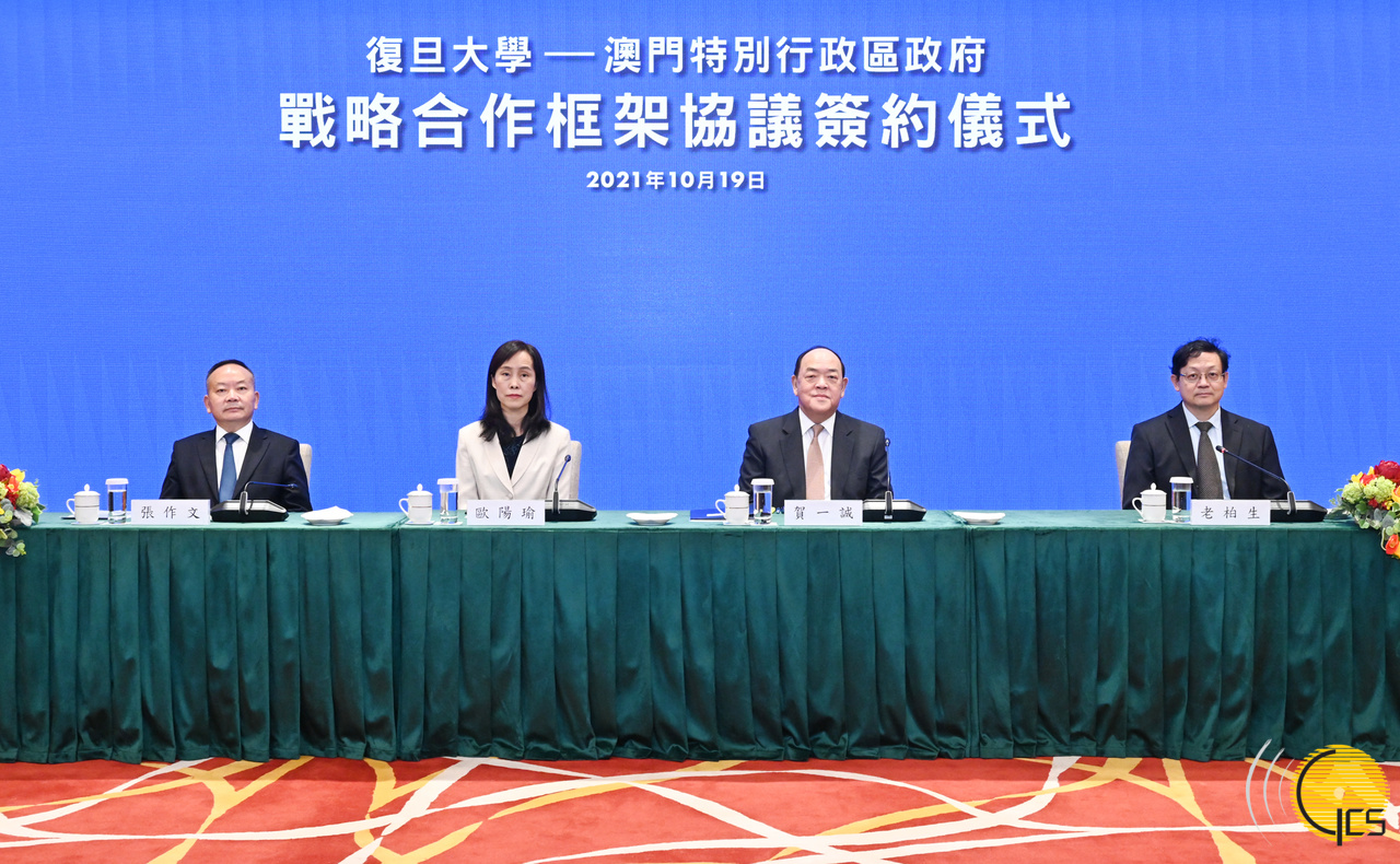 澳門特別行政區政府今(19)日與上海復旦大學簽署戰略合作框架協議。行政長官賀一誠表示,協議聚焦科技創新、微電子、人工智能、金融債券、經濟、公共衛生、文化研究等領域,將為澳門特區與復旦大學合作發展提供更有力的機制支撐。