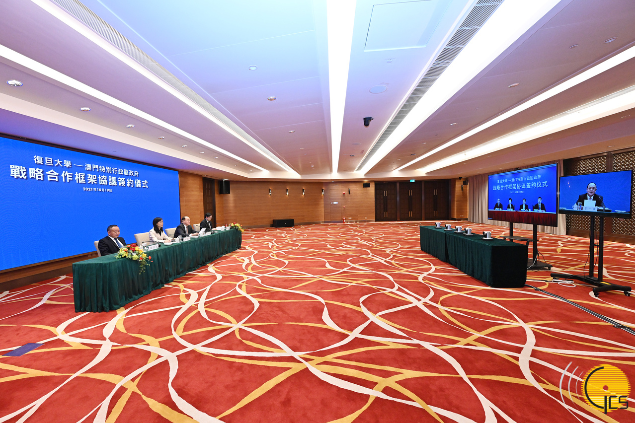 其後,雙方透過視頻連線方式,在行政長官賀一誠、社會文化司司長歐陽瑜;復旦大學由復旦大學黨委書記焦揚、校長許寧生的共同見證下,特區政府教育及青年發展局局長老柏生與復旦大學副校長陳志敏簽署了合作協議。