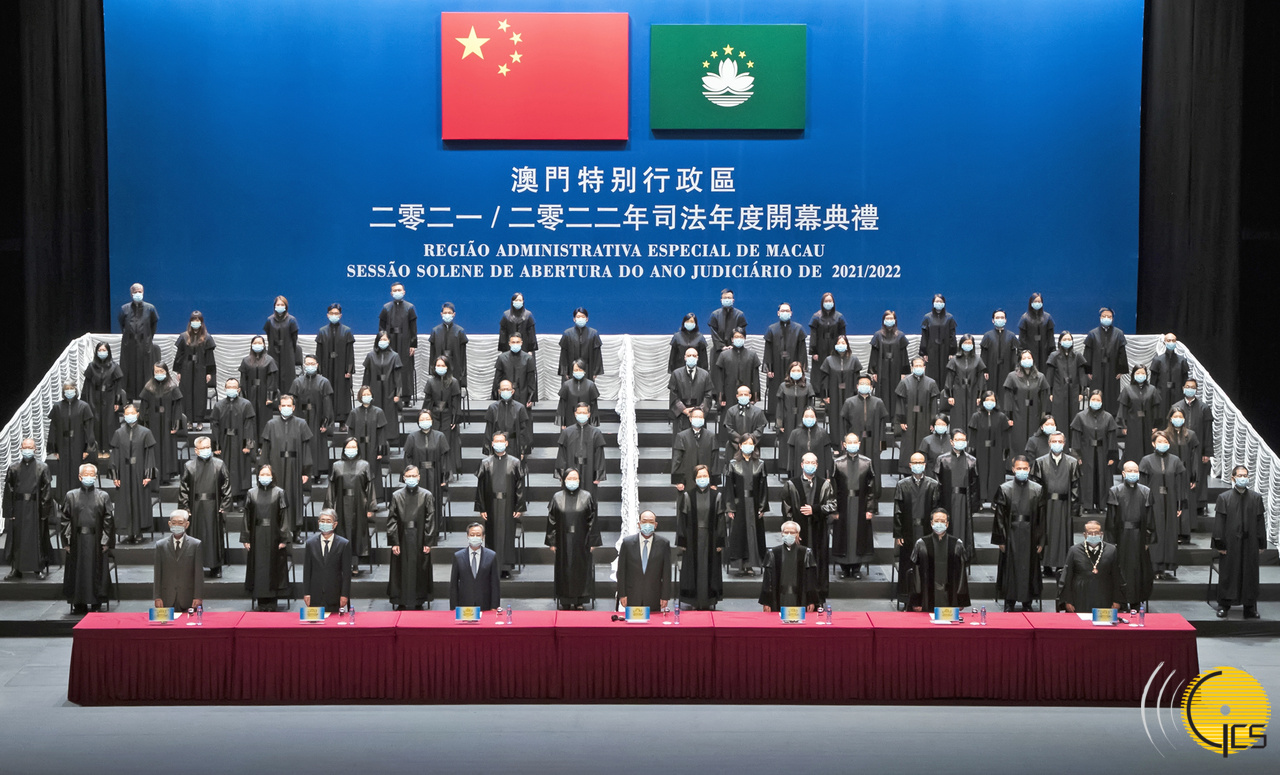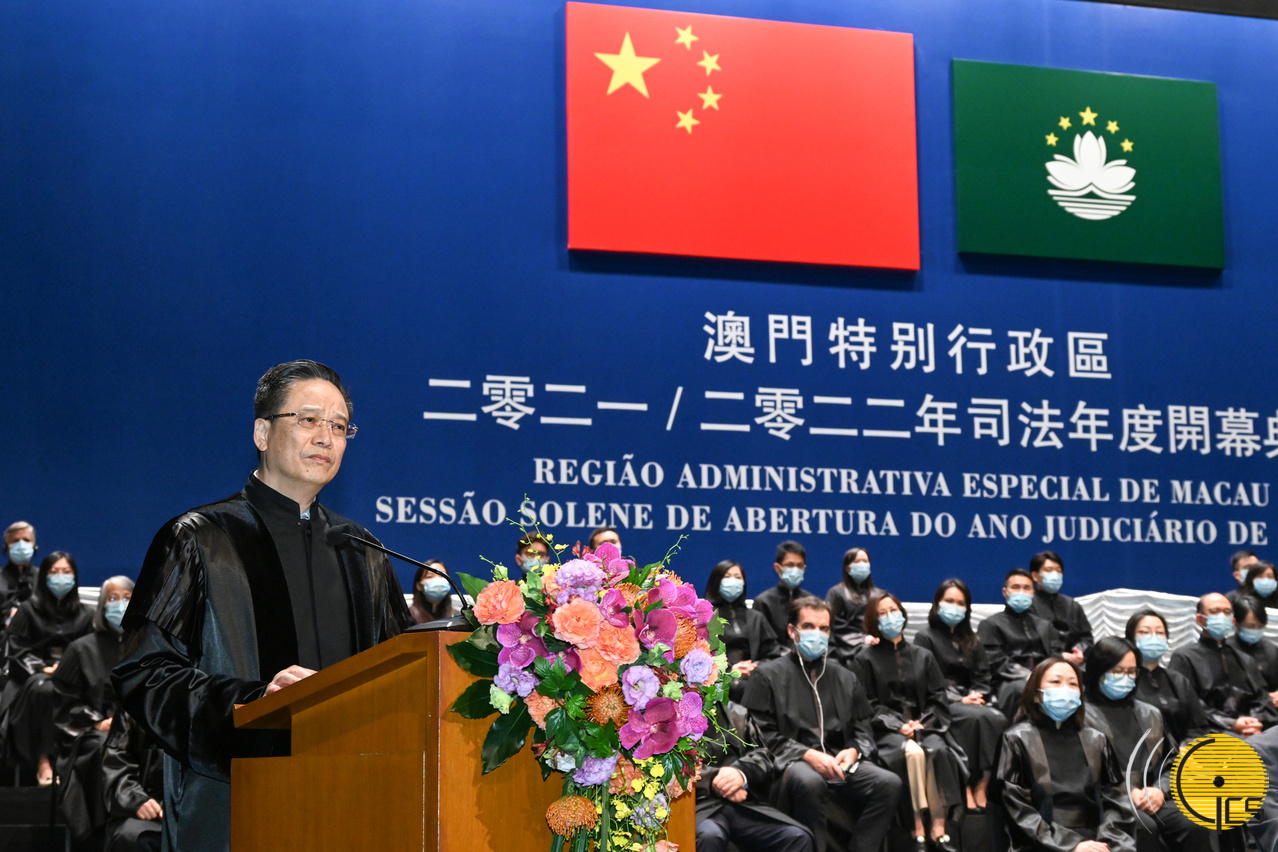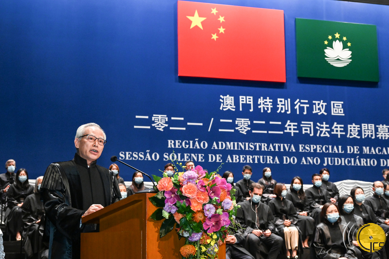 澳門特別行政區2021/2022年司法年度開幕典禮下午在文化中心舉行,由行政長官賀一誠、立法會主席高開賢、終審法院院長岑浩輝、行政法務司司長張永春、檢察長葉迅生、推薦法官的獨立委員會主席劉焯華、律師公會主席華年達主禮。