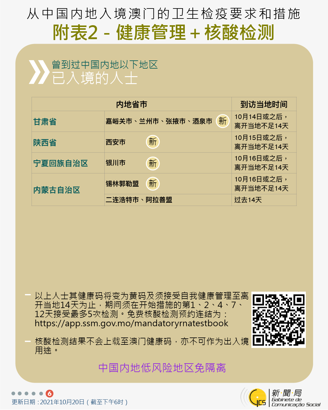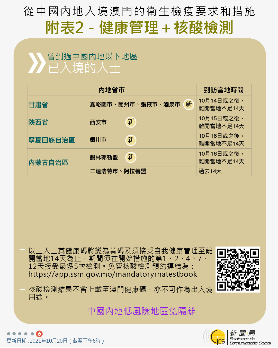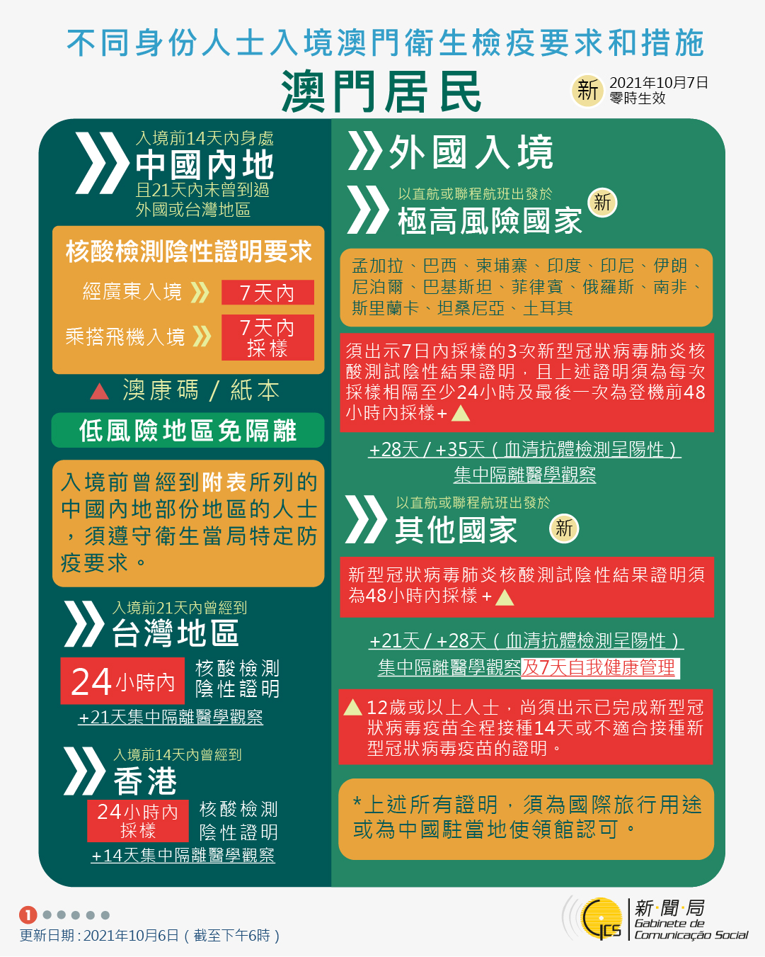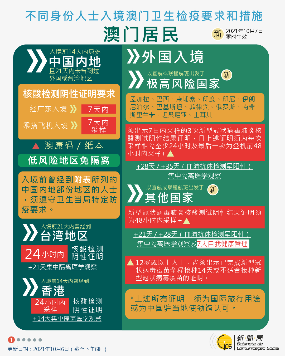 【圖文包】2021/10/20最新入境澳門衛生檢疫要求和措施