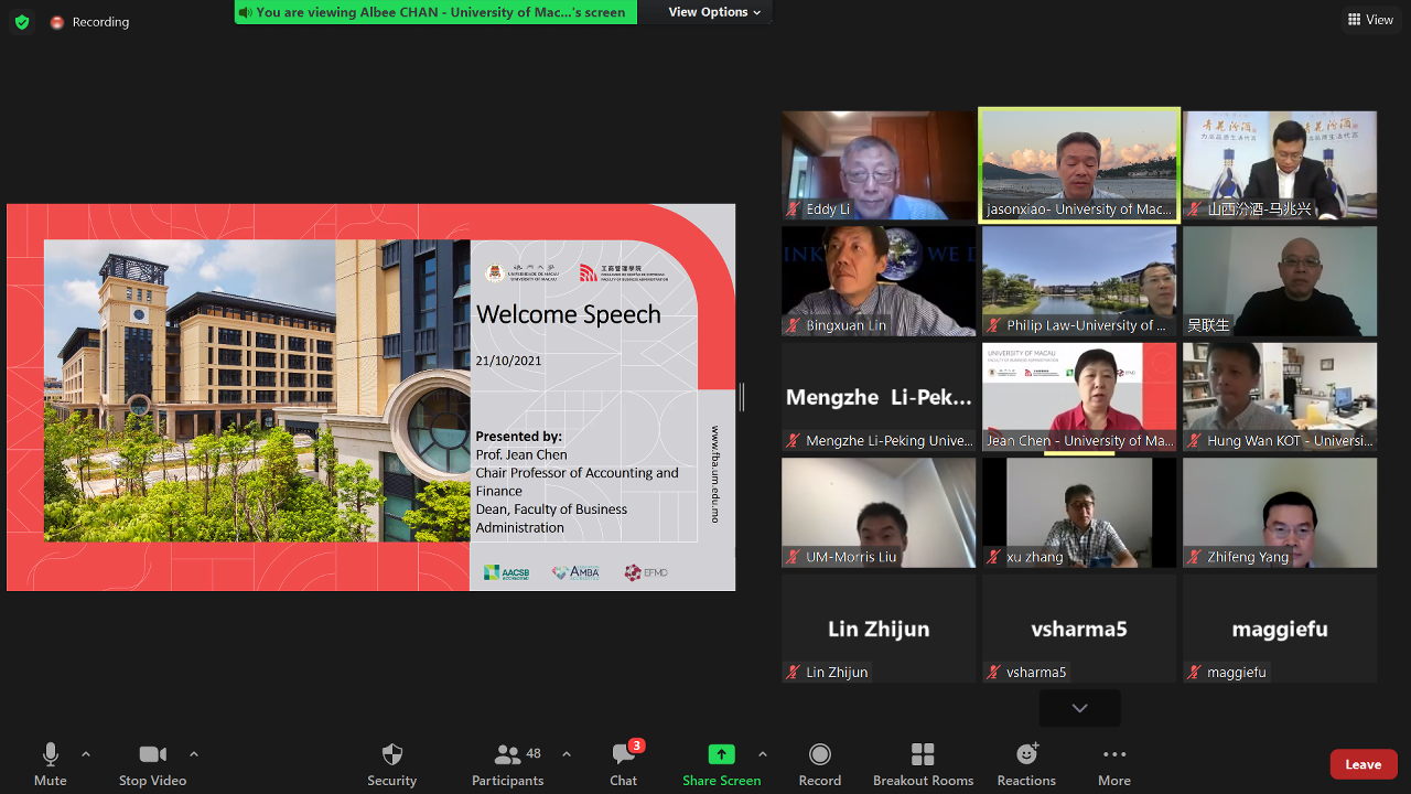 澳門大學工商管理學院與北京大學光華管理學院共同舉辦《會計與公共政策學刊》(JAPP)特刊線上會議——中國審計與公共政策。來自世界各地的200多名專家學者就中國審計研究遇到的挑戰和機遇進行深入的探討和交流。