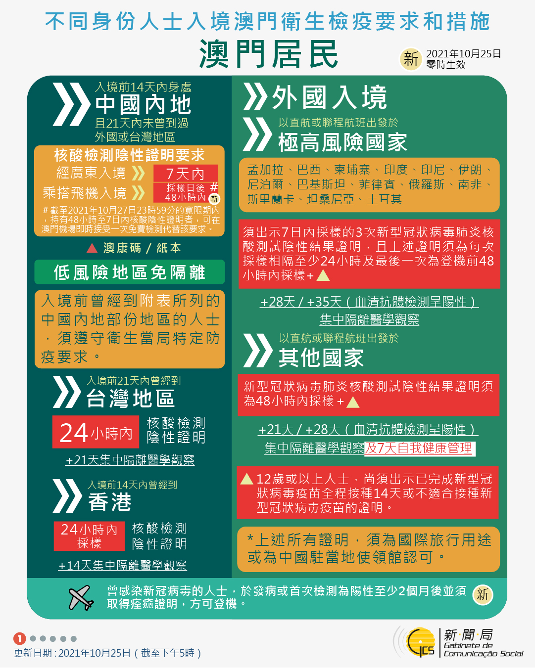 【圖文包】2021/10/29最新入境澳門衛生檢疫要求和措施