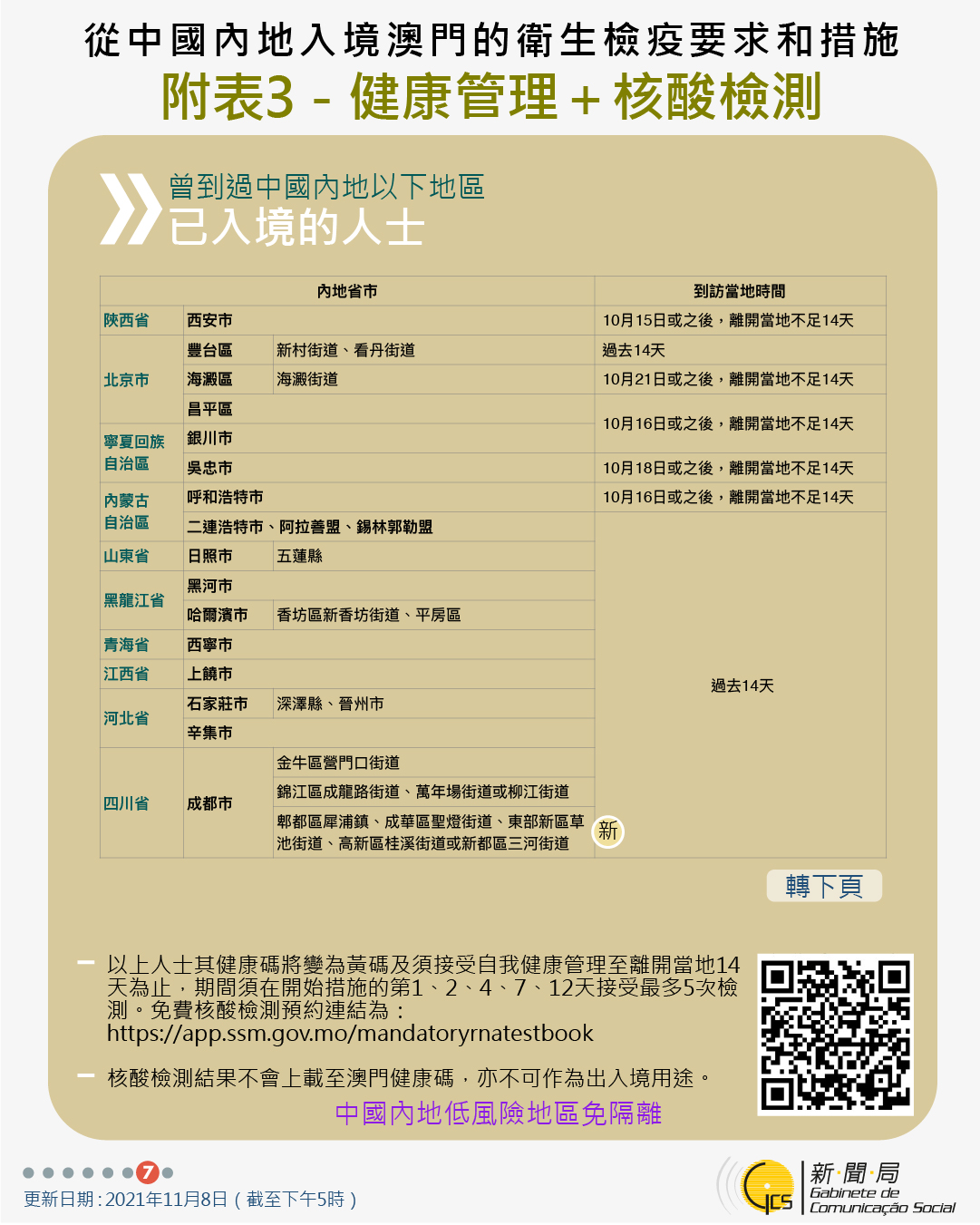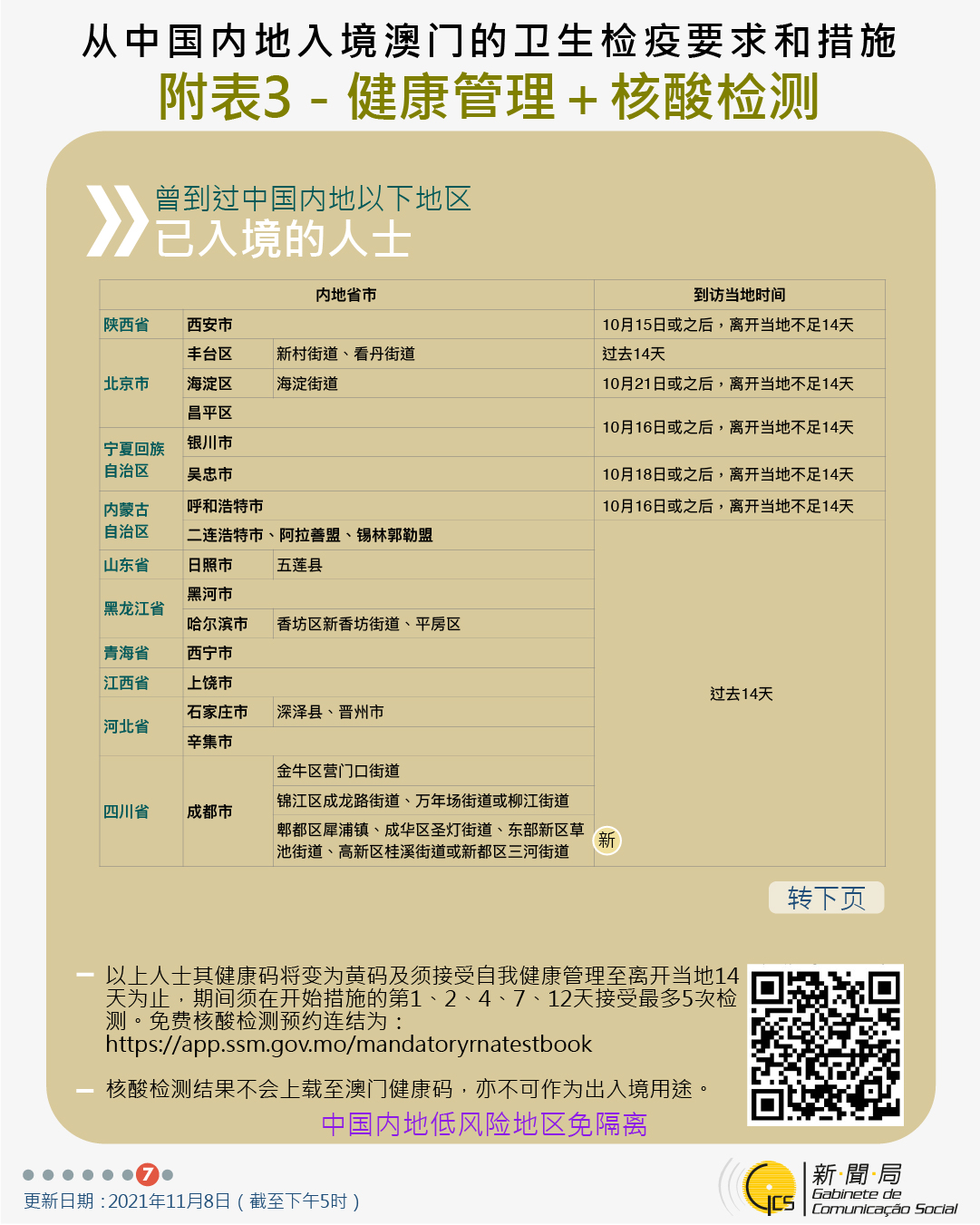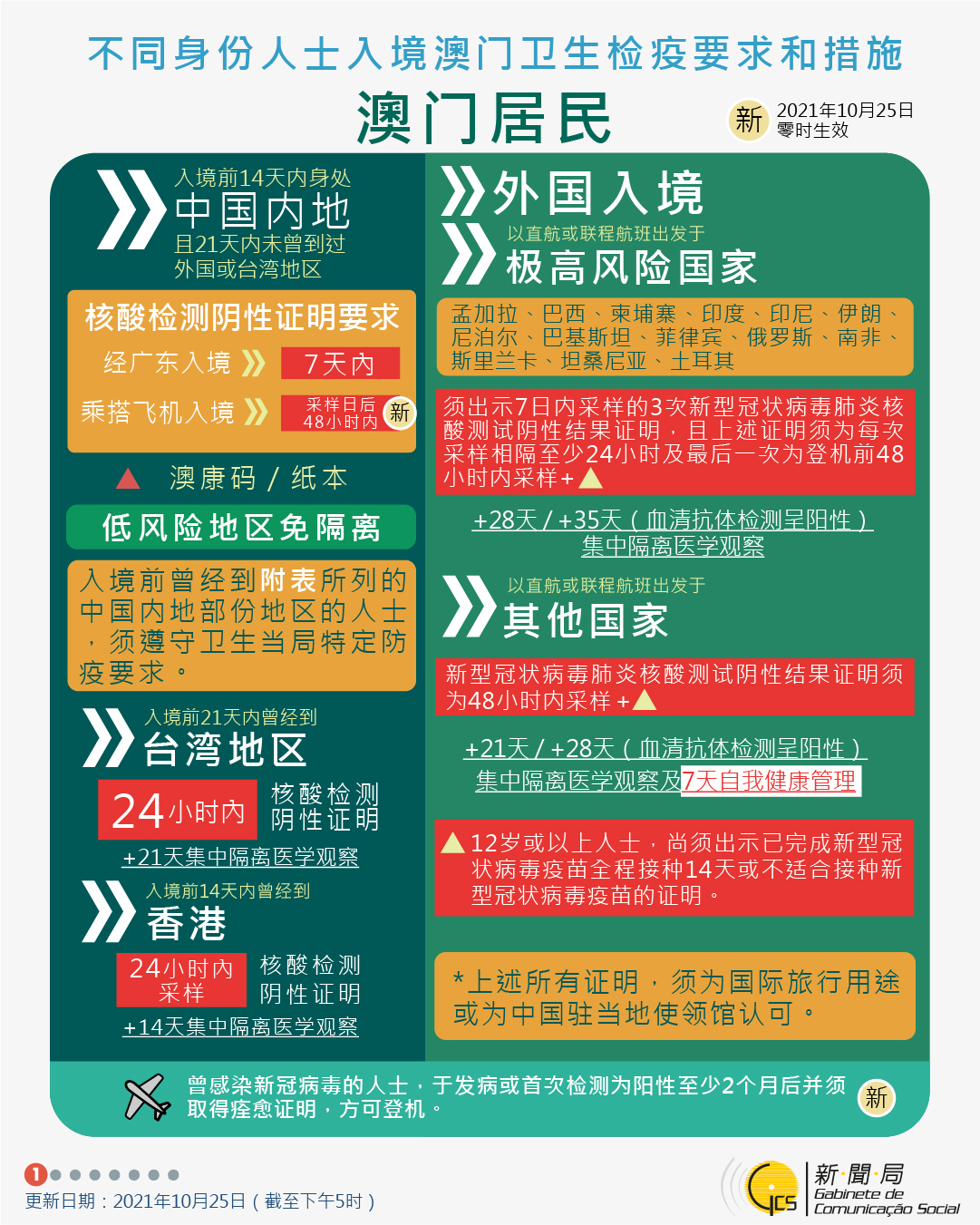 【圖文包】2021/11/8最新入境澳門衛生檢疫要求和措施