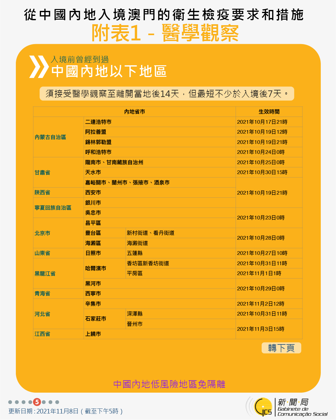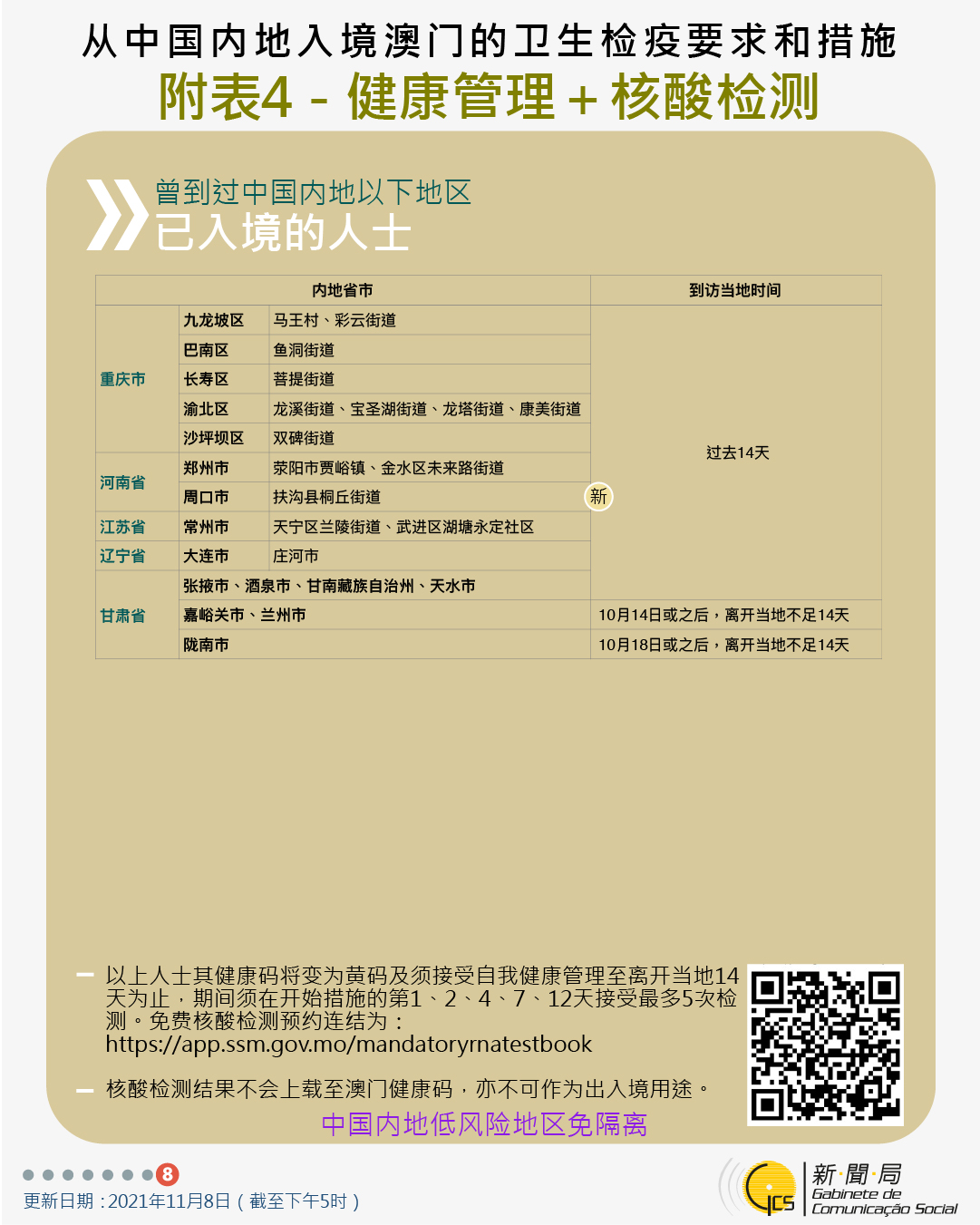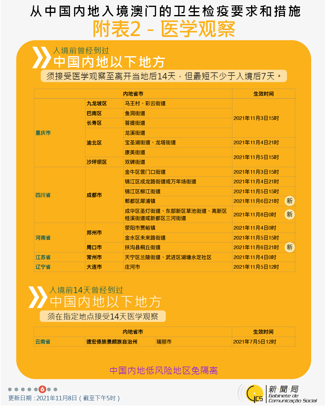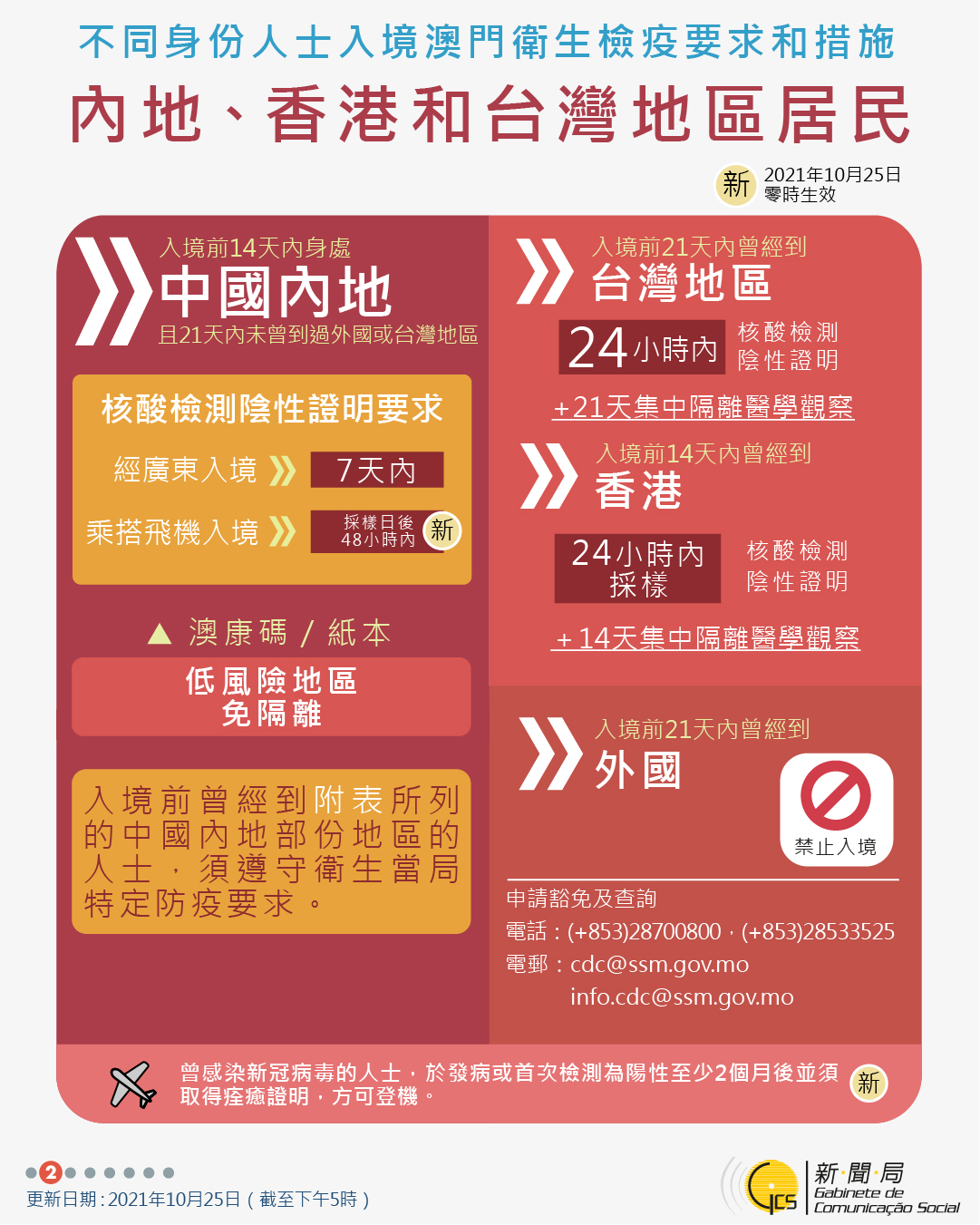 【圖文包】2021/11/8最新入境澳門衛生檢疫要求和措施