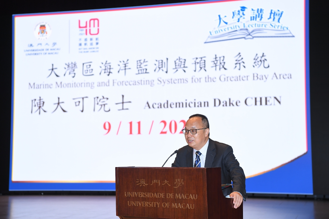 澳門大學今(9)日舉行“澳門大學40週年校慶——大學講壇"講座,由中國科學院院士、南方海洋科學與工程廣東省實驗室(珠海)主任陳大可以“大灣區海洋監測與預報系統”為題發表演說,分析了大灣區海洋監測與預報系統的前沿發展,以及未來發展重點。